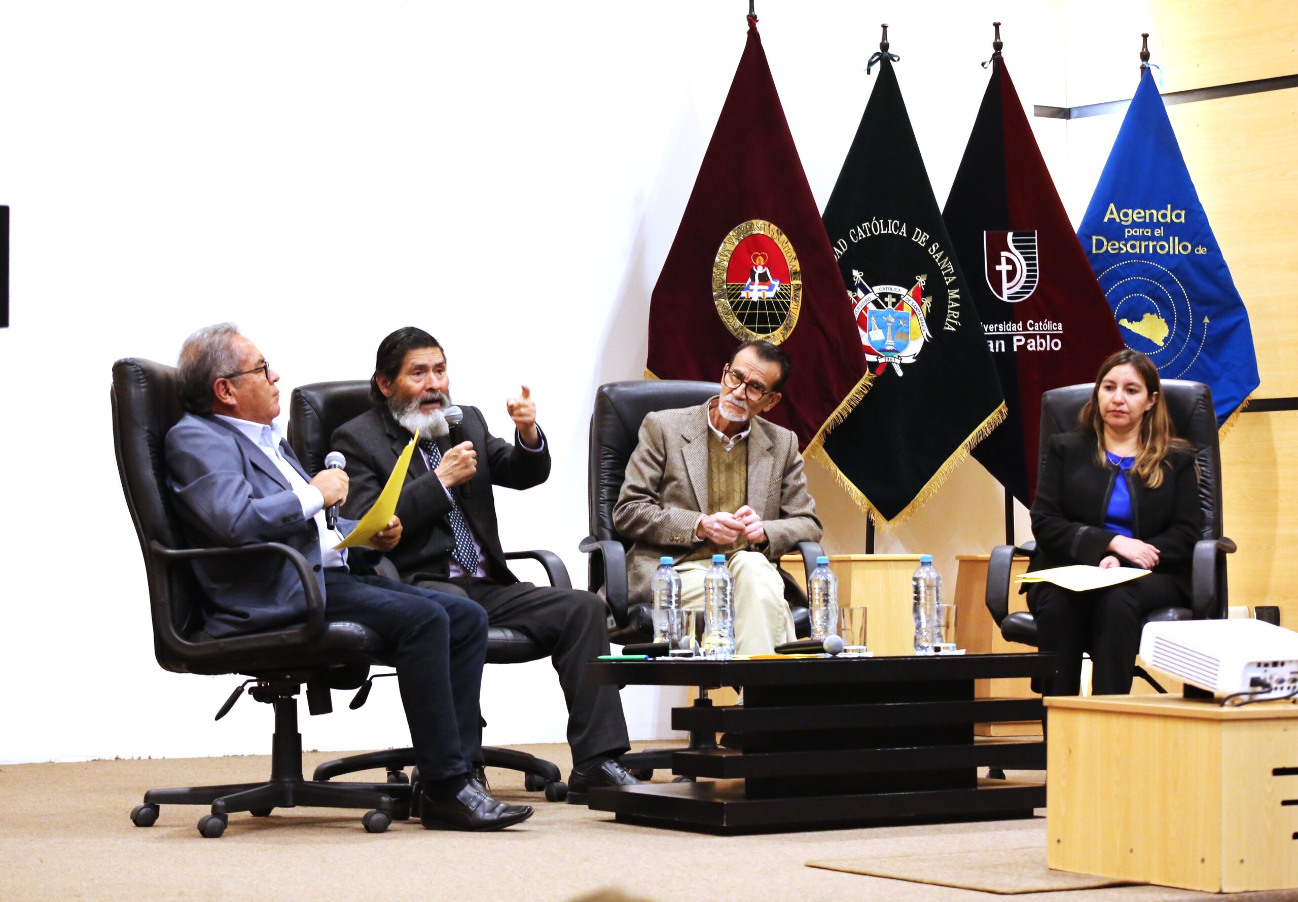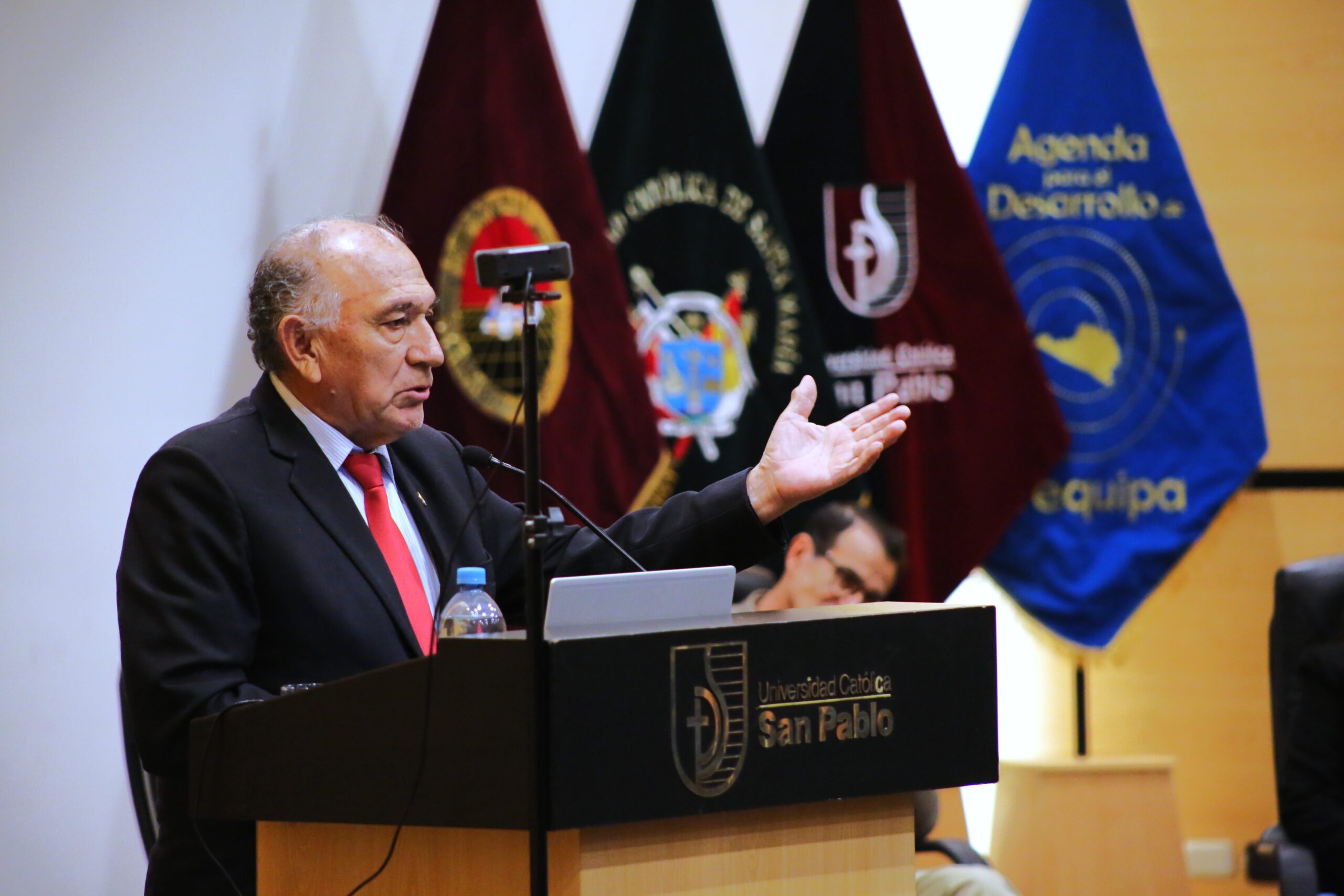 La actividad se llevó a cabo en las instalaciones de la Universidad Católica San Pablo el pasado viernes. Representaron a la UNSA el vicerrector de investigación, Dr. Henry Polanco Cornejo; la secretaria general, Dra. Ruth Maritza Chirinos Lazo; y el director de la Escuela Profesional de Ingeniería Ambiental, Dr. Luis Álvarez Soto.