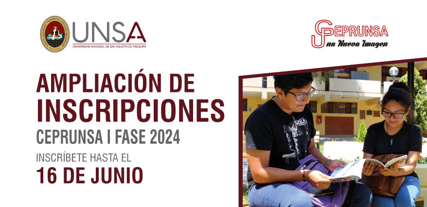 Ante el masivo pedido de padres de familia, se ampliaron hasta el viernes 16 de junio las inscripciones al Proceso de Admisión Ordinario correspondiente al Centro de Estudios Preuniversitarios – CEPRUNSA I Fase 2024 de la Universidad Nacional de San Agustín de Arequipa.