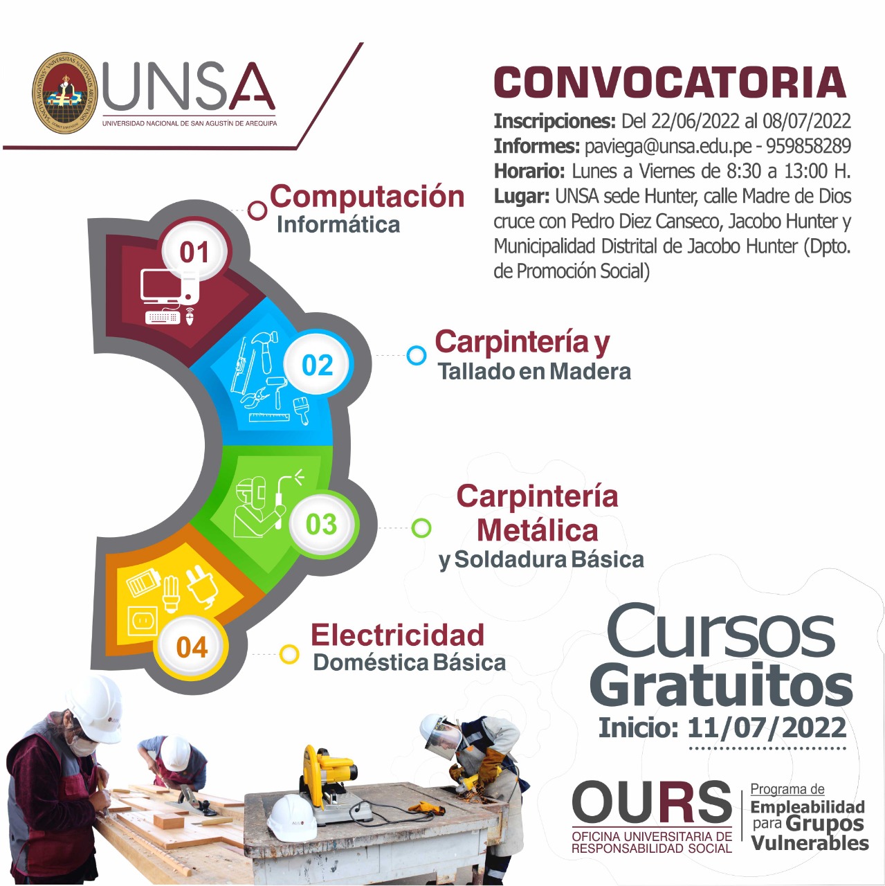 La Universidad Nacional de San Agustín de Arequipa- UNSA, a través de la Oficina Universitaria de Responsabilidad Social, inicia las inscripciones para el programa “Empleabilidad para grupos vulnerables”, que desde su apertura en el 2017 benefició a más de 235 jóvenes de escasos recursos económicos.