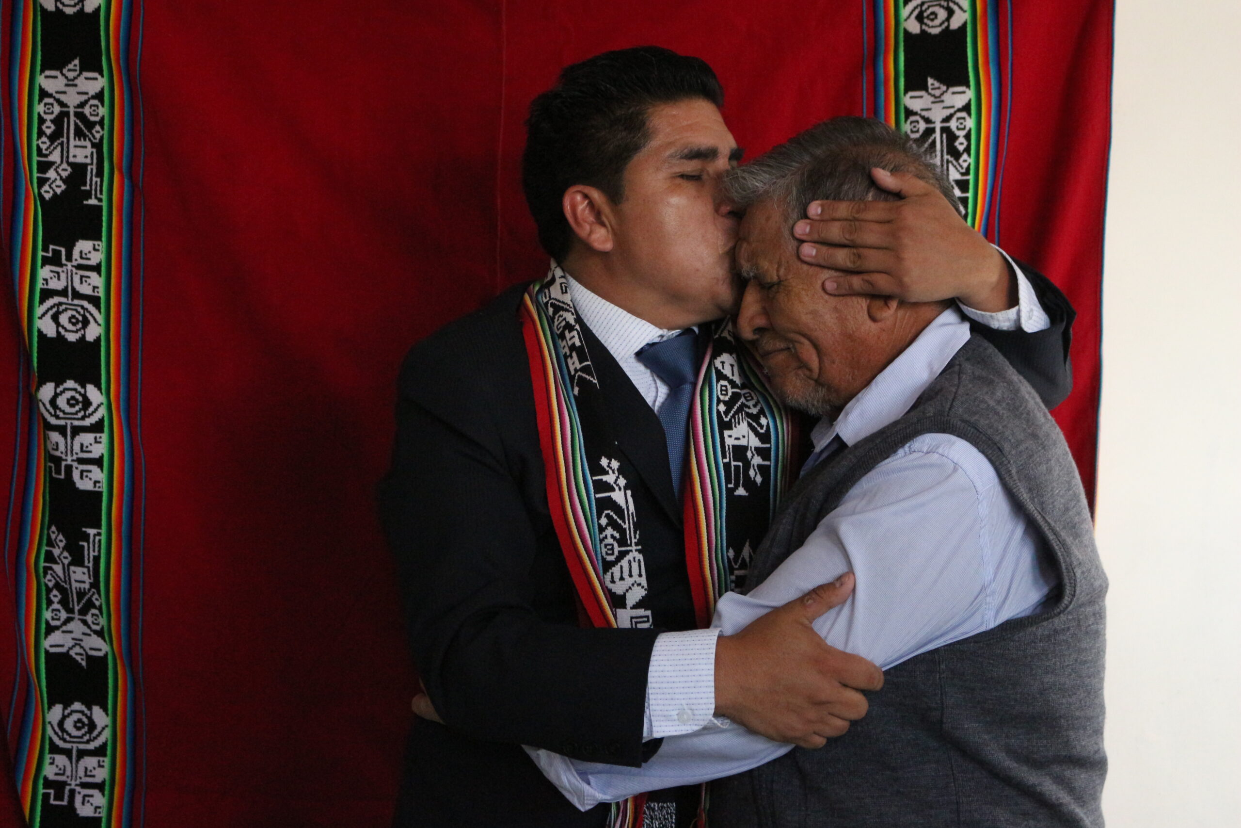 En el espaldar de su silla puso el manto color ocre bordado por su madre, que le daba la sensación de sus abrazos y el calor maternal. El ambiente y los instrumentos académicos estaban listos, pero no podía empezar sin antes rendir sus respetos a la Pachamama rociando un poco de vino en el suelo, como un ritual para rendir una buena exposición.