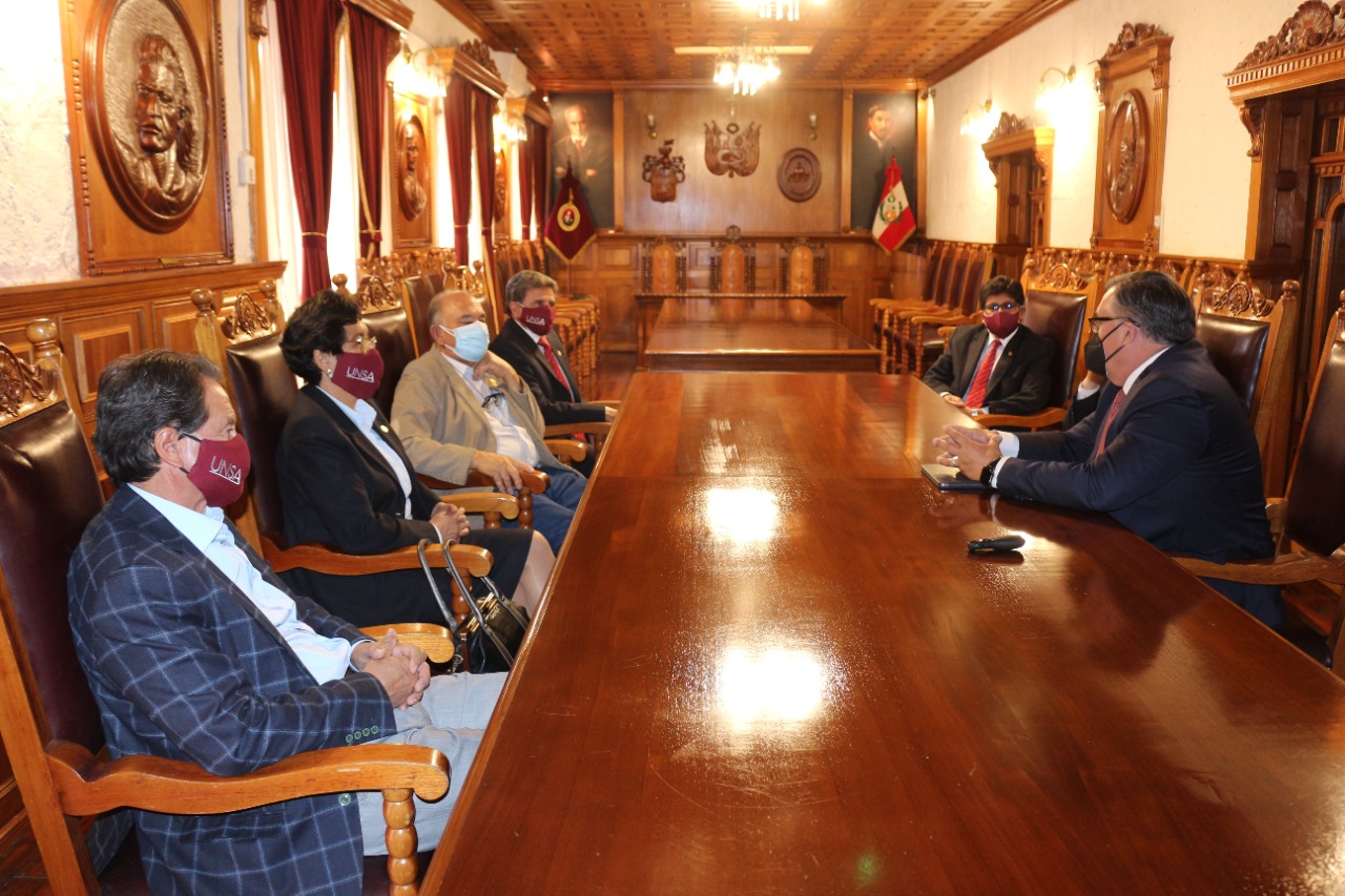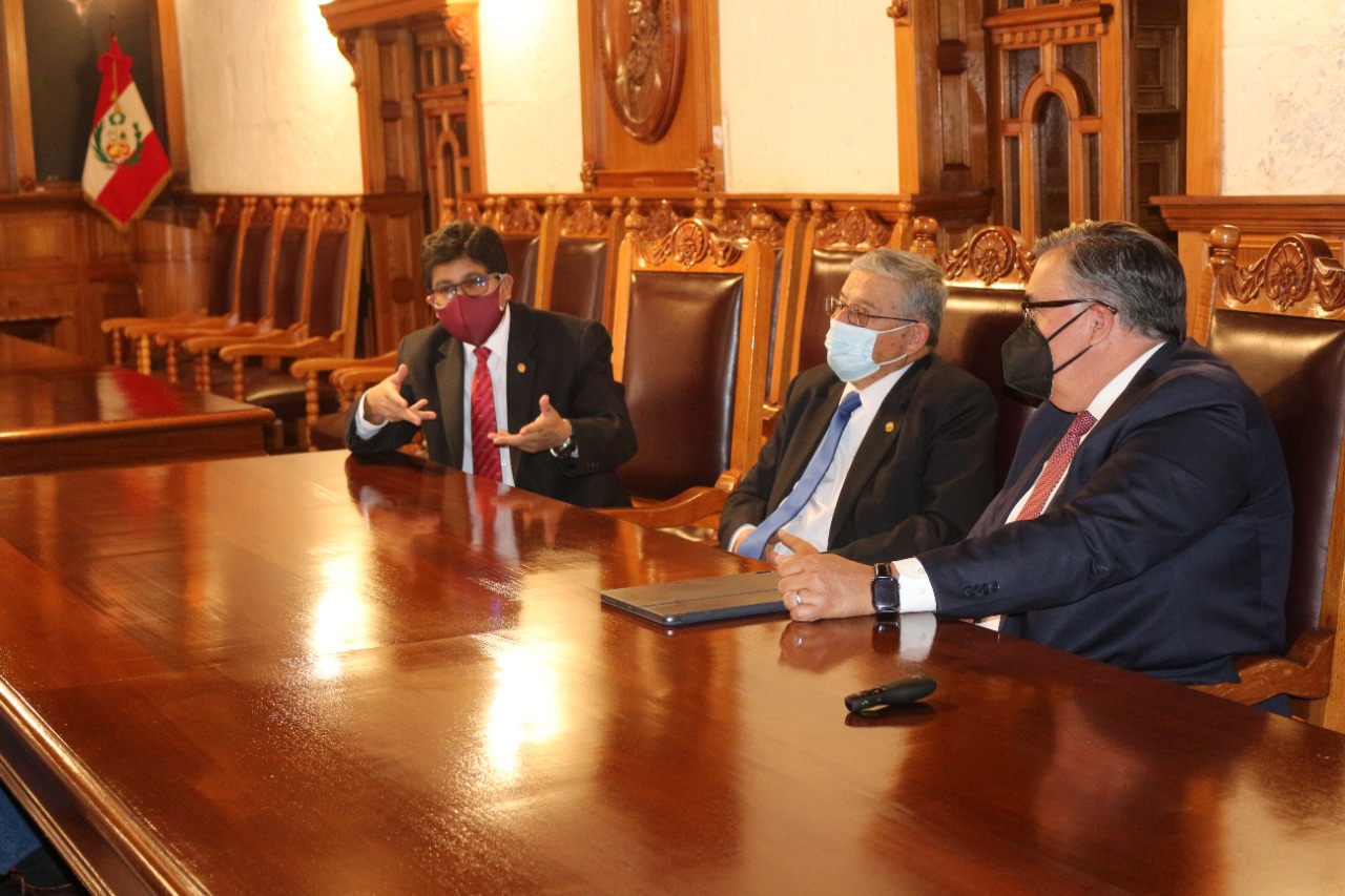 Las autoridades de la Universidad Nacional de San Agustín de Arequipa, junto al electo rector y vicerrectores, se reunieron con el Vicepresidente de Investigación y Alianzas de la Universidad de Oklahoma-Estados Unidos, Dr. Tomas Díaz de la Rubia, afianzando la continuidad de sus relaciones interinstitucionales.
