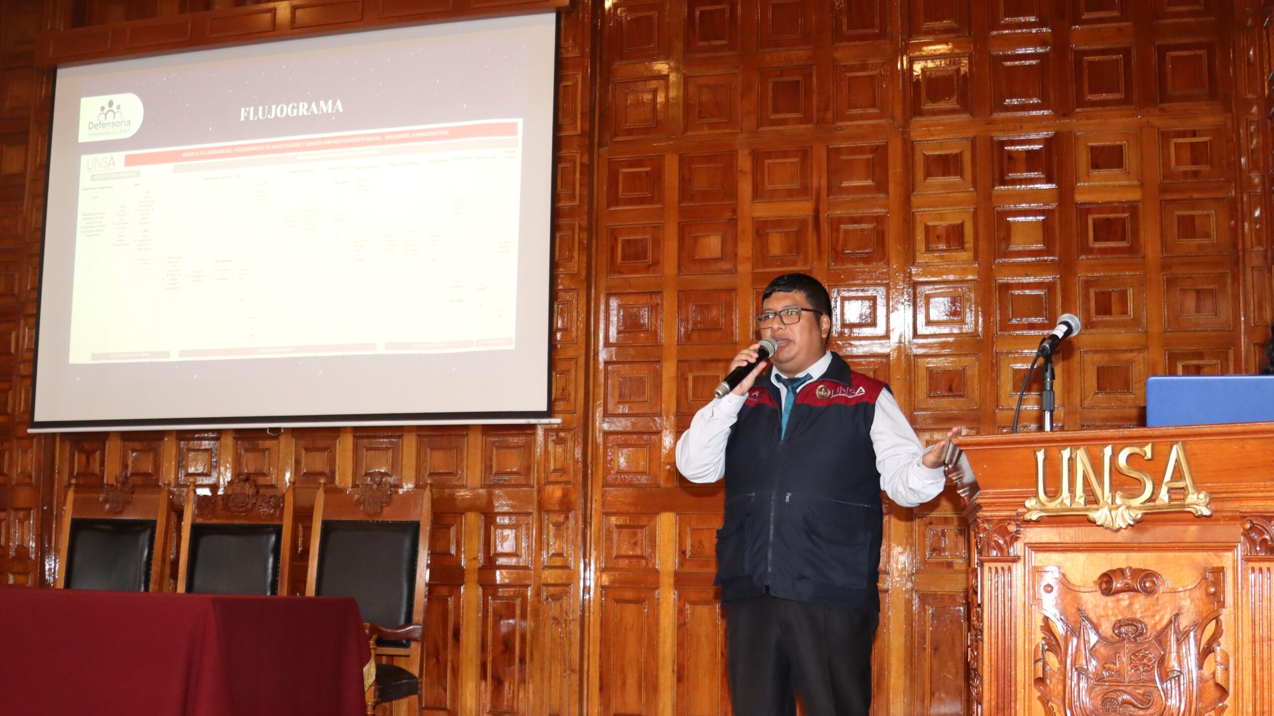 El Abog. Ander Huanqui de Defensoría Universitaria presentó los procedimientos para la presentación de denuncias