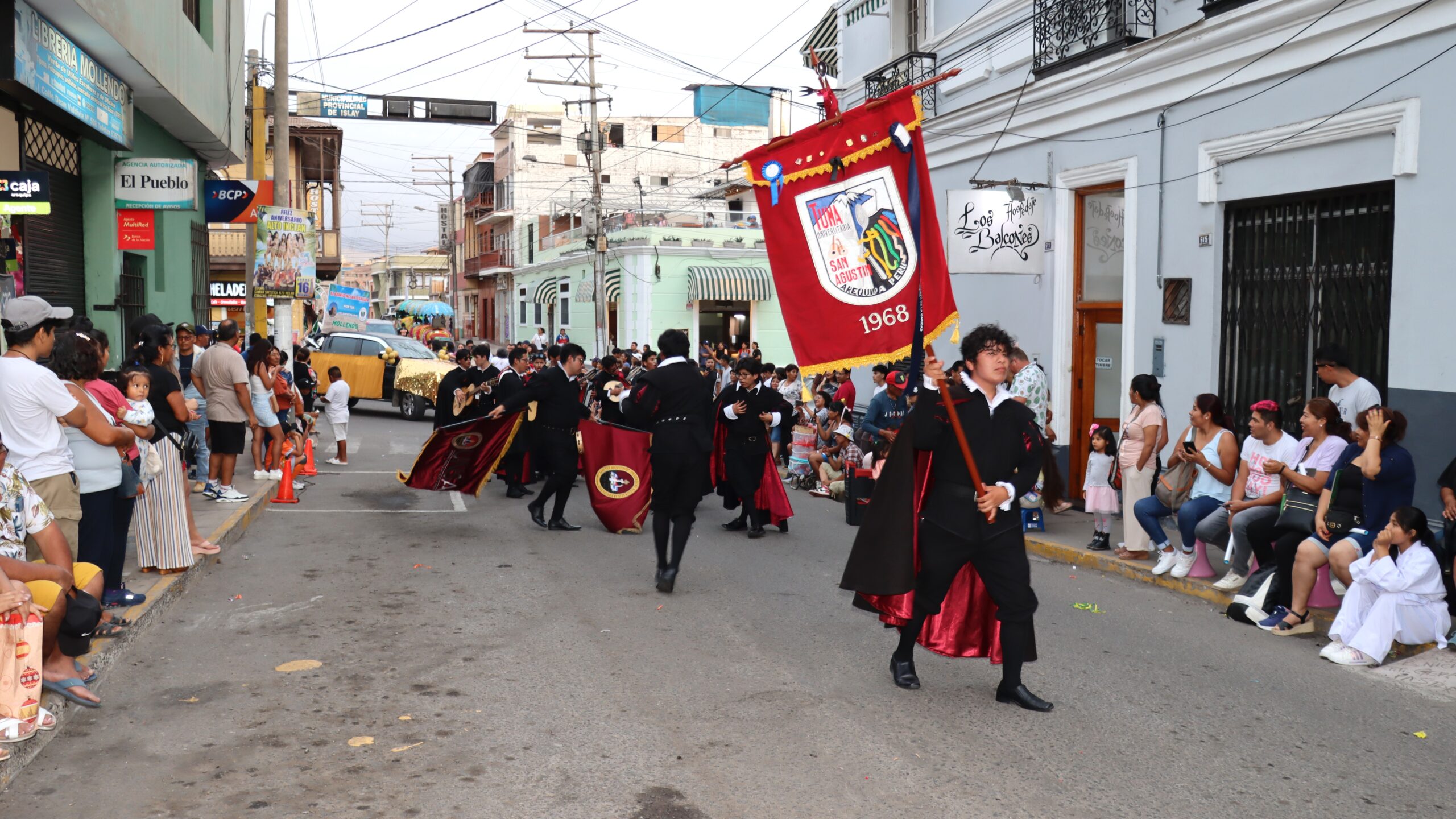 Cabe destacar que además desfilaron, el personal administrativo agustino portando la Bandera de Mollendo y estudiantes con el banner institucional en el corso que se inició en el Centro de Salud San Martín de Porres de la Av. Mariscal Castilla, recorriendo las principales calles hasta la plaza Francisco Bolognesi, en donde se encuentra el palacio municipal y se colocó el estrado principal para las autoridades de la provincia.
