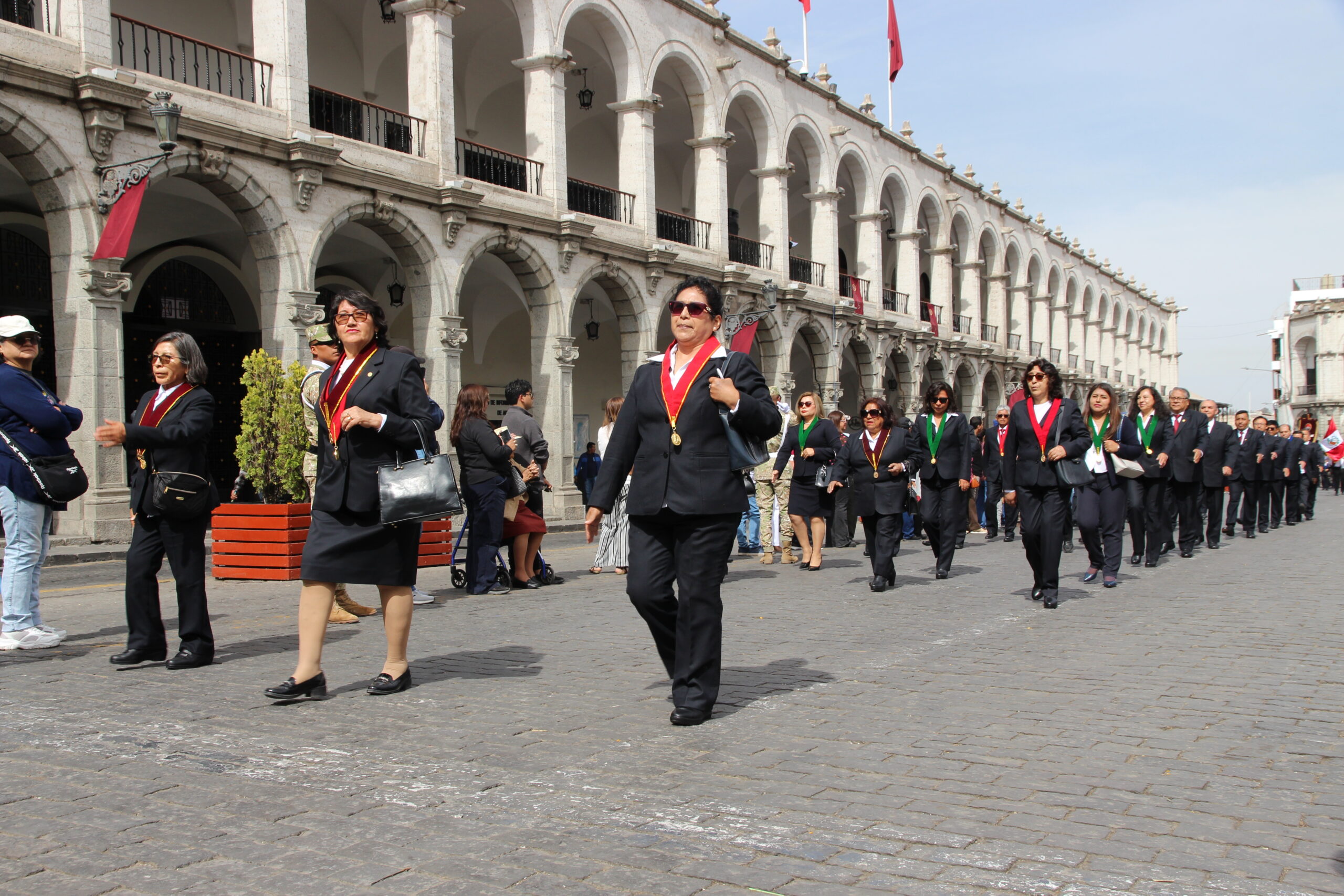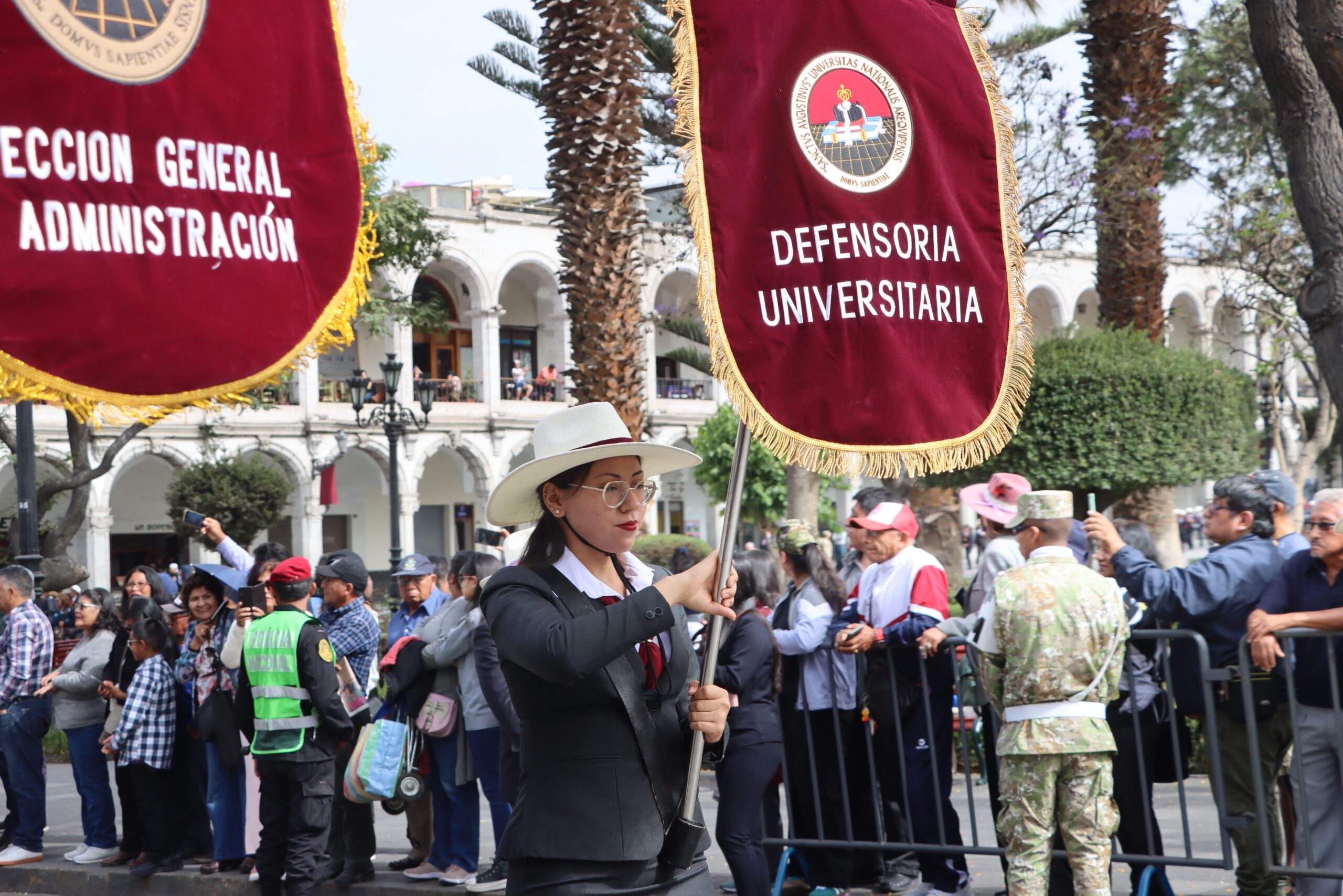 El desfile concluyó con el paso del personal de la Administración Central, SUDUNSA, SUTUNSA y Defensa Civil, cerrando así una jornada de celebración y reconocimiento a la UNSA. El público arequipeño, fiel a la tradición dominical, se congregó para presenciar este acto protocolar, reafirmando el vínculo entre la universidad y la ciudad.