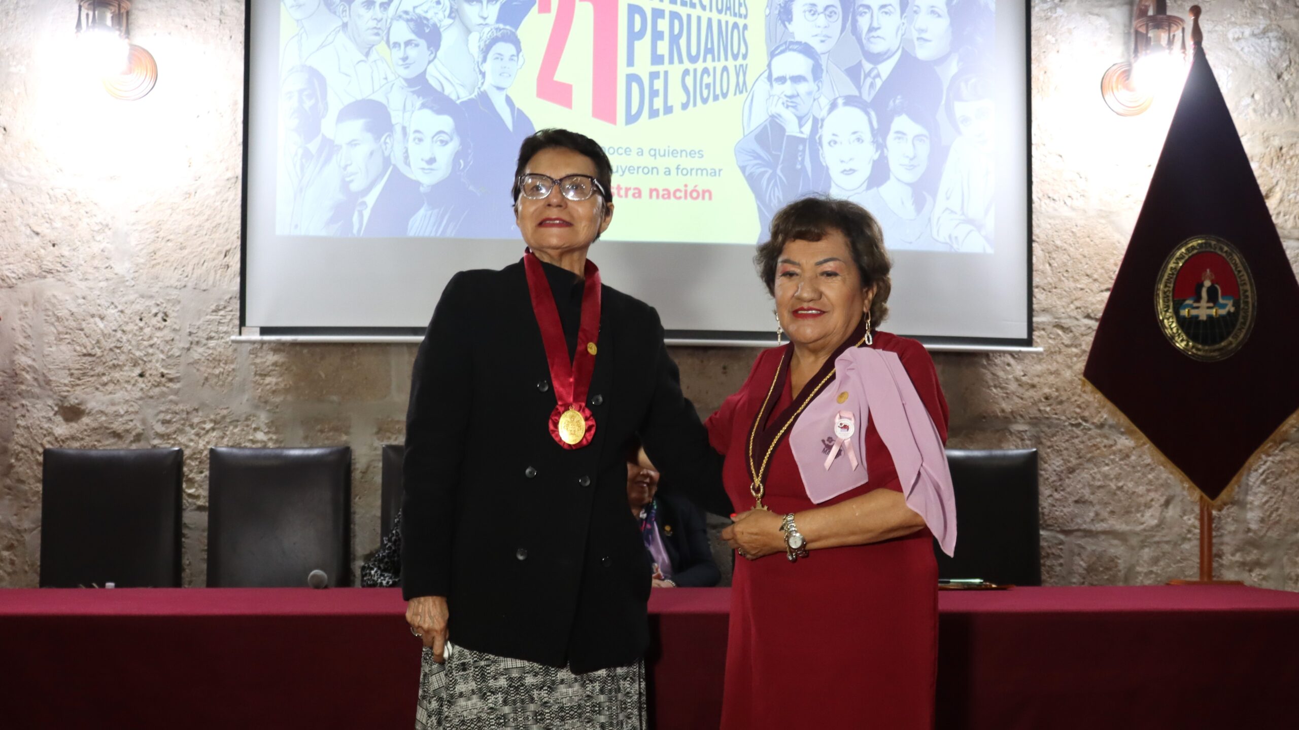 En el acto protocolar, la Asociación de Mujeres Arequipeñas del Bicentenario, entregó la medalla y pin institucional en reconocimiento a este personaje, que fue recibido por su nieta, Dra. Rosa Meneses.