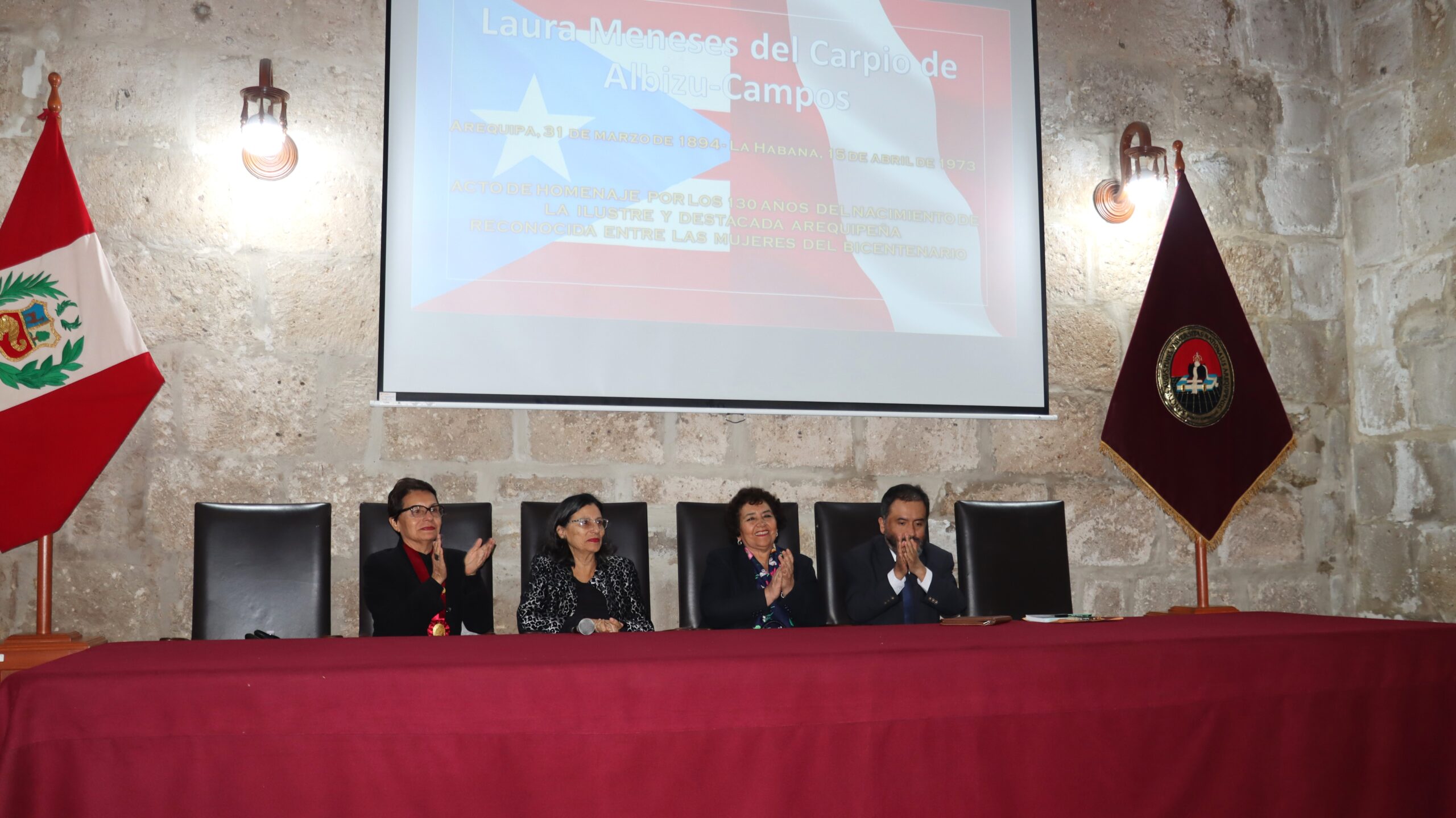 La Universidad Nacional de San Agustín de Arequipa (UNSA) a través de la Unidad de Promoción y Desarrollo Cultural, conmemoró los 130 años del nacimiento de la ilustre arequipeña Laura Meneses del Carpio de Albizu Campos, reconocida entre los 21 intelectuales peruanos del siglo XX.