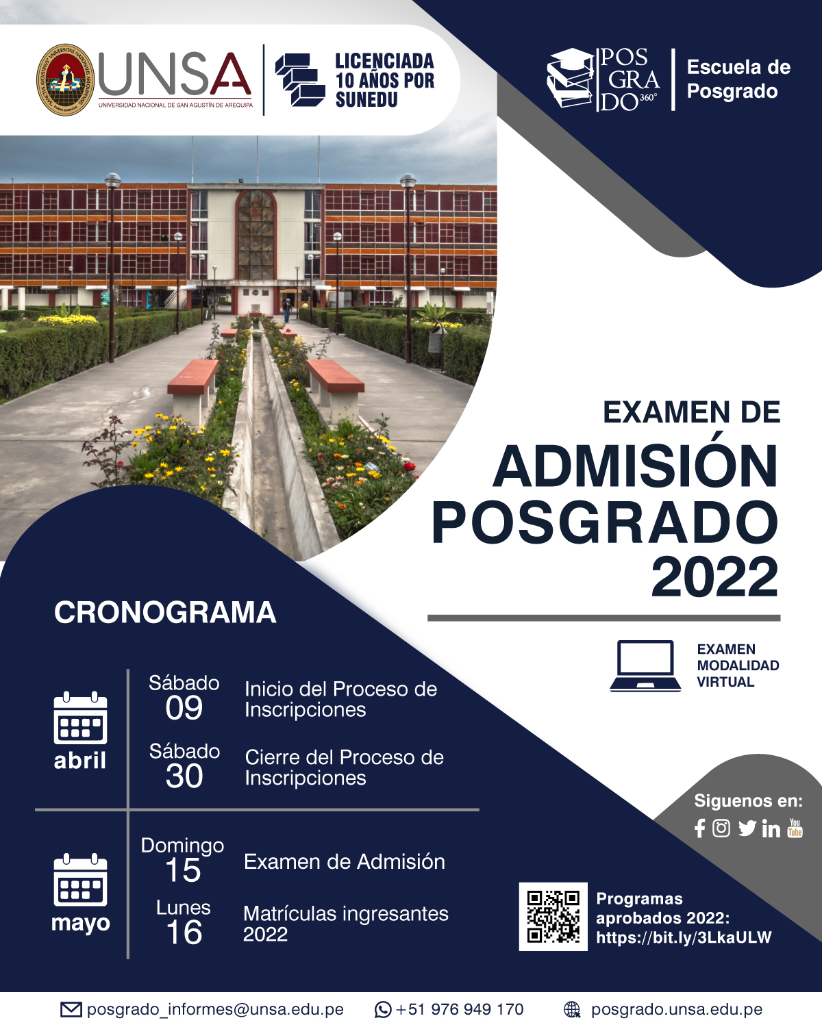 o escribir al correo posgrado_informes@unsa.edu.pe