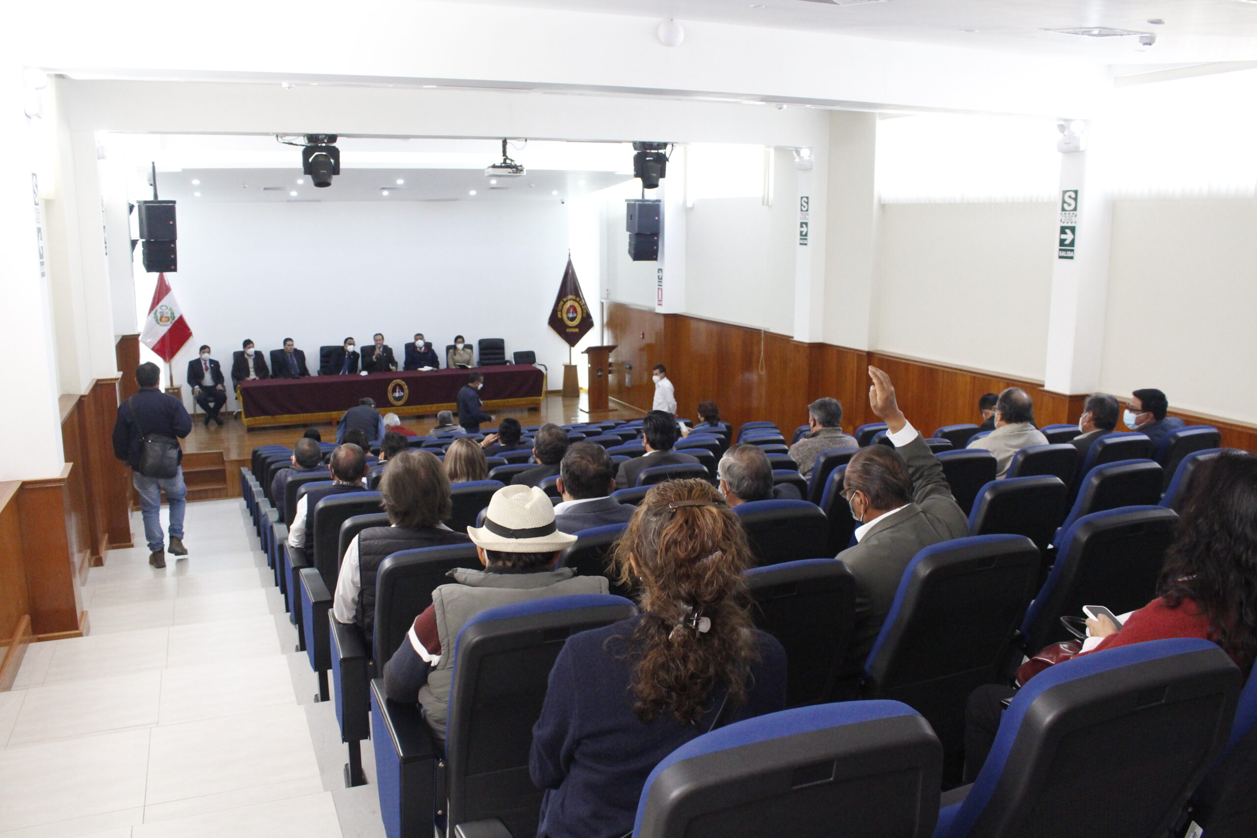 Las autoridades de la Universidad Nacional de San Agustín de Arequipa se reunieron con los decanos, directores de departamentos, directores de escuelas y personal administrativo de las tres áreas académicas para coordinar el retorno al dictado de clases presenciales durante el Semestre – B 2022.