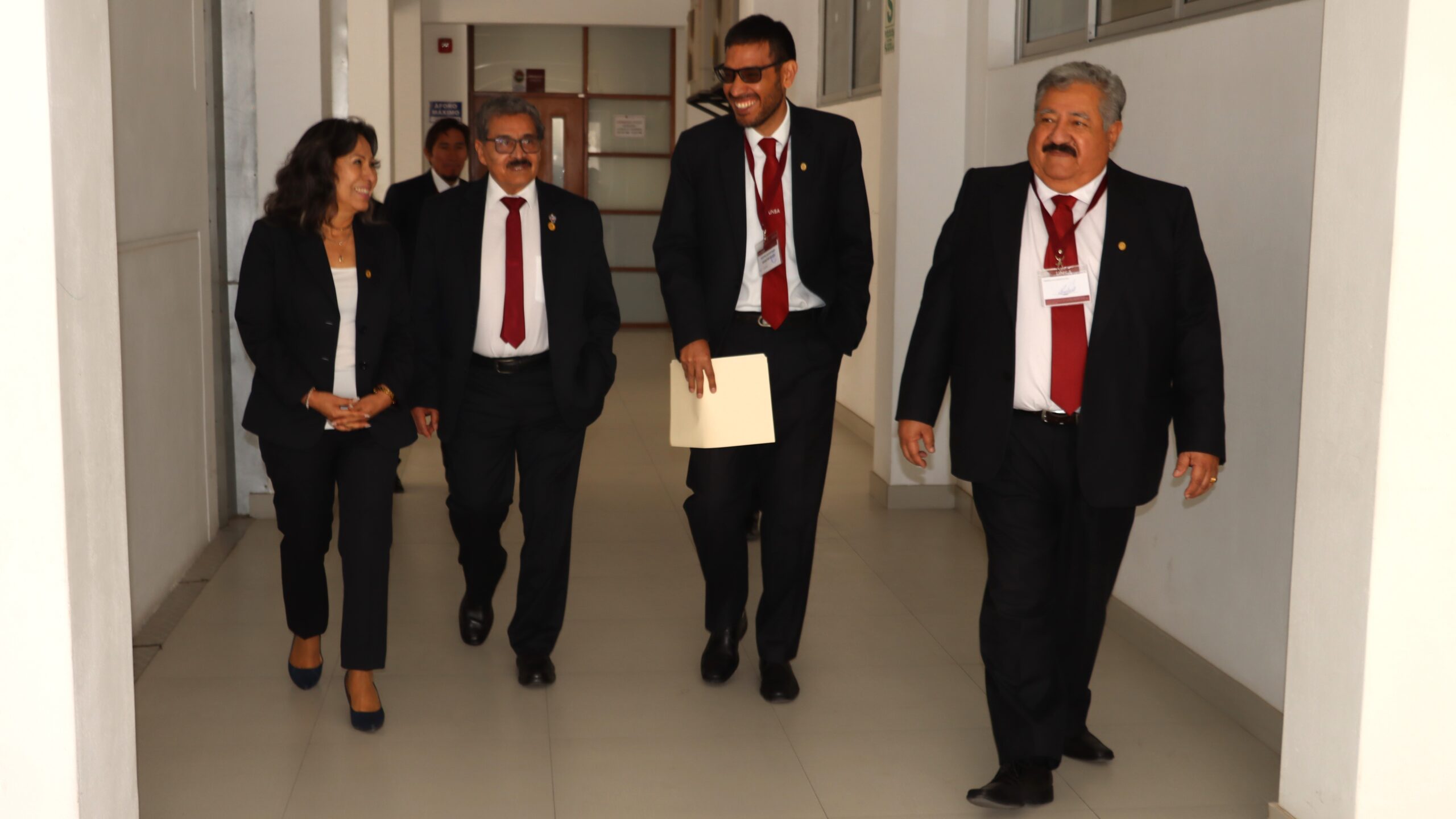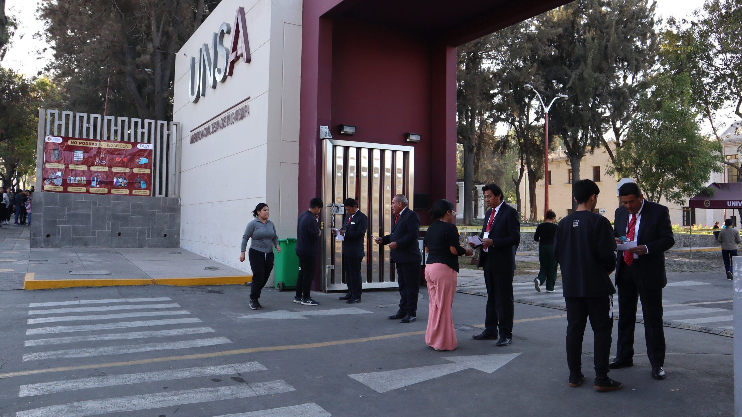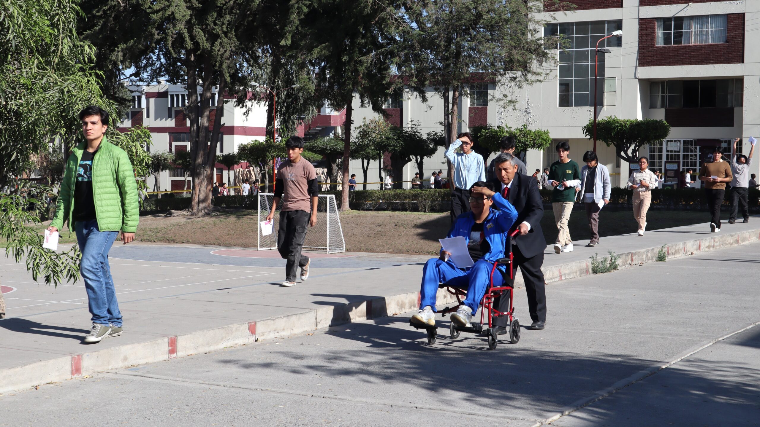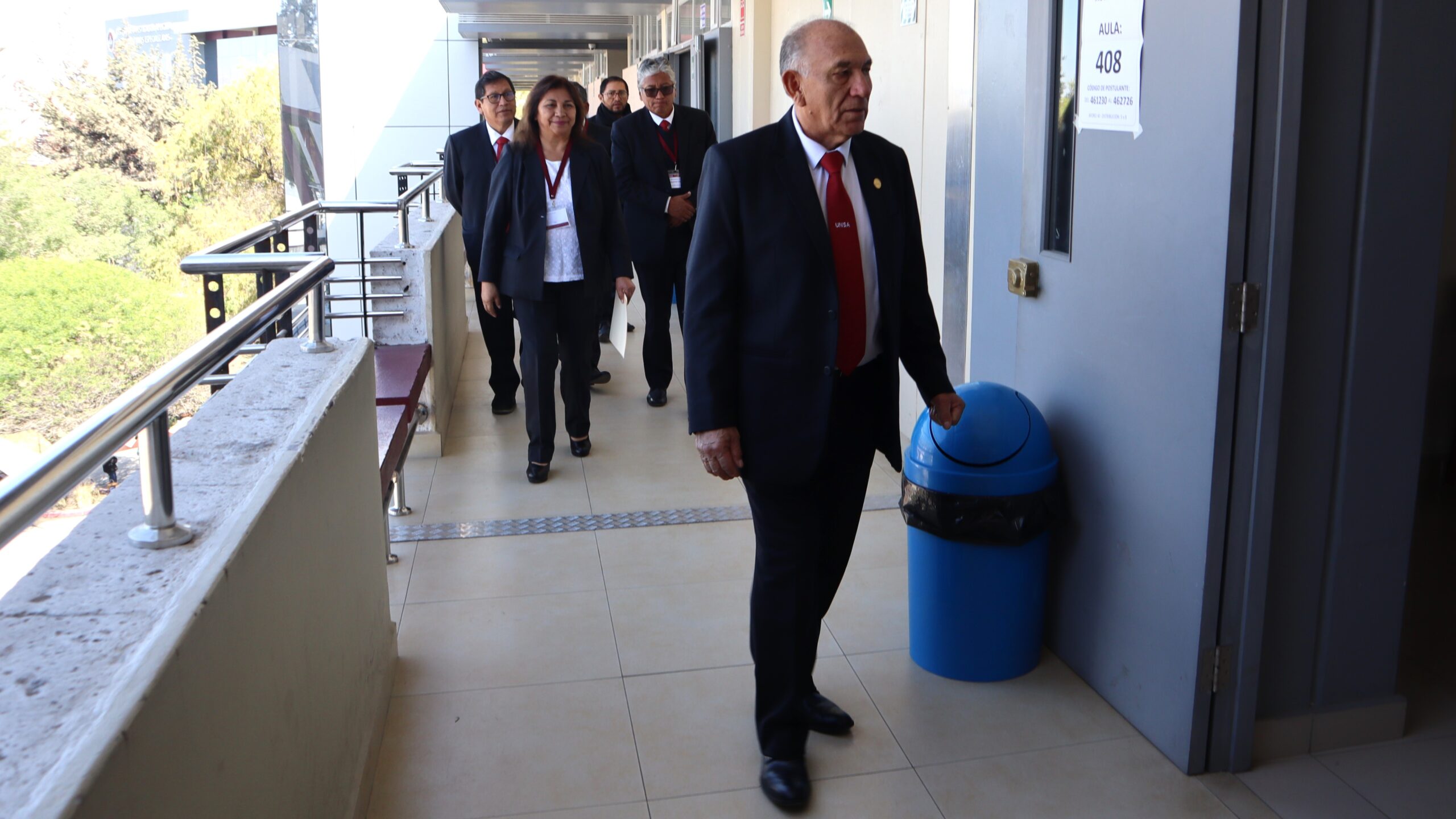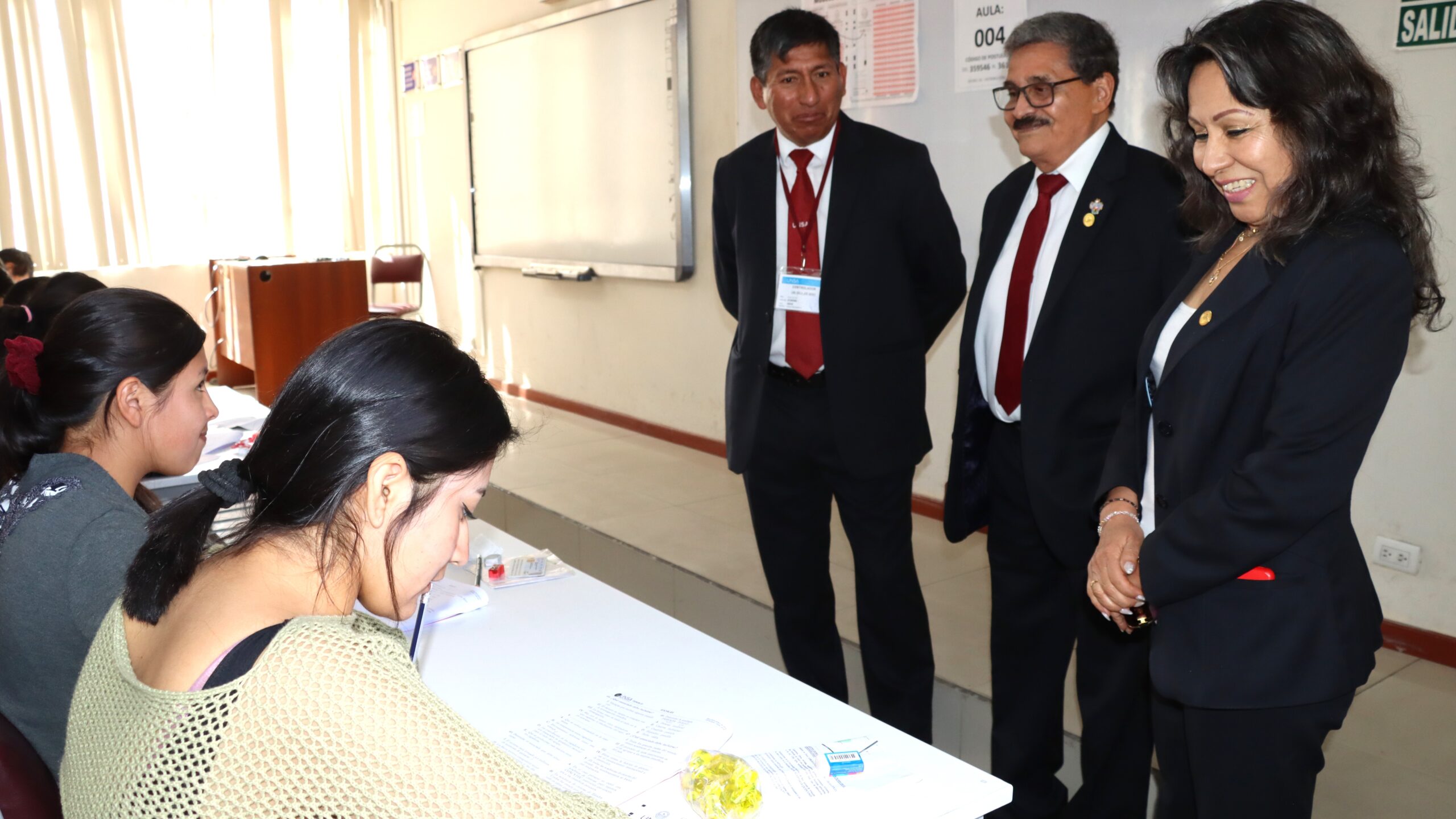 El Dr. Hugo José Rojas Flores, rector de la UNSA, junto con la Dra. Ruth Maritza Chirinos Lazo, secretaria general; el Dr. Howard Pinto Arana, director de admisión; y el Dr. Carlos Aguilar del Carpio, decano de la Facultad de Psicología, Relaciones Industriales y Ciencias de la Comunicación, supervisaron personalmente el desarrollo de las evaluaciones en el área de sociales.