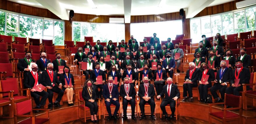 Acompañaron a la máxima autoridad agustina el Vicerrector Académico, Dr. Luis Cuadros Paz; el Vicerrector de Investigación, Dr. Henry Polanco Cornejo; y la secretaria general de la universidad, Dra. Maritza Chirinos Lazo; al igual que los decanos de las 18 facultades.