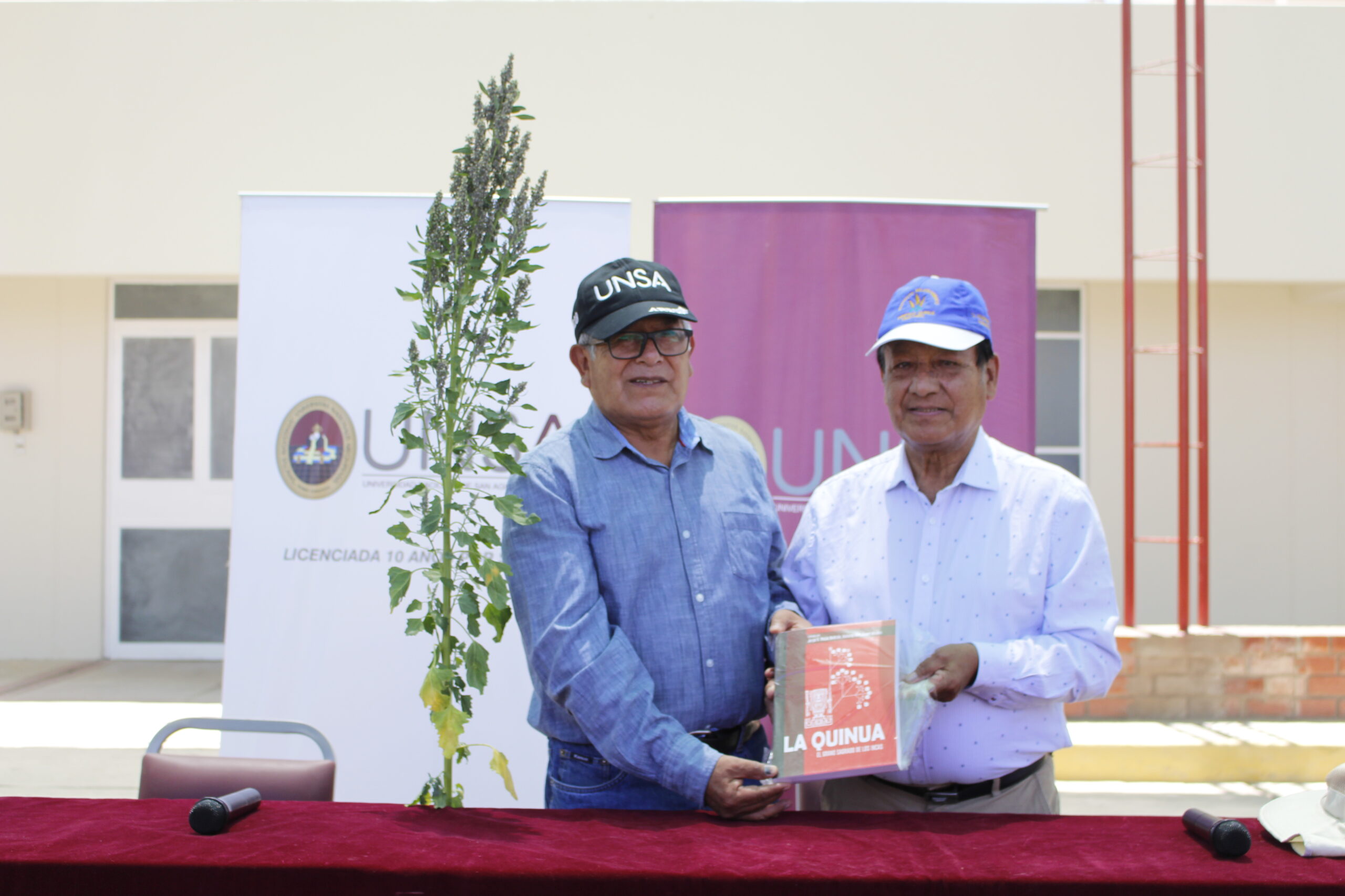 El docente e investigador de la Universidad Nacional del Altiplano, Dr. Ángel Mujica Sánchez, quien es parte del proyecto estuvo presente en la actividad y explicó como se realizó el trabajo con la quinua para la obtención de estas nuevas variedades. Su experiencia en el manejo del cultivo fue fundamental para el desarrollo de la investigación.