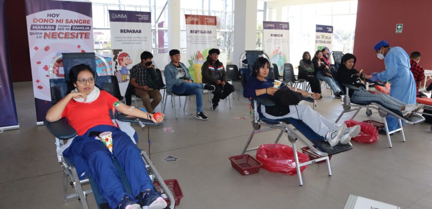 Con el lema “UNSA Comparte Vida”, se desarrolló la actividad en coordinación con los Bancos de Sangre del Hospital Regional Honorio Delgado Espinoza y EsSalud; se contó además con el apoyo de la Cruz Roja Peruana y otras entidades del campo de la salud.