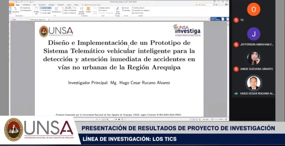 El proyecto financiado por el programa UNSA Investiga de la Casa Agustina, es un sistema de alerta satelital para la asistencia inmediata en caso de accidentes vehiculares en vías no urbanas de la región. Este prototipo está en proceso de ser patentado por la UNSA.