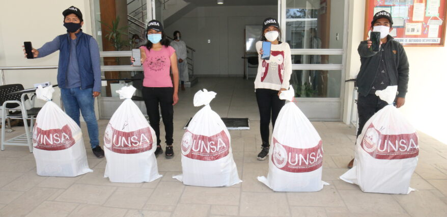 Un grupo de ingresantes a la Universidad Nacional de San Agustín de Arequipa, que radica en Apurímac, Puno, Cusco y la provincia de Islay, recibieron las primeras canastas de alimentos y celulares con internet para realizar sus clases virtuales.