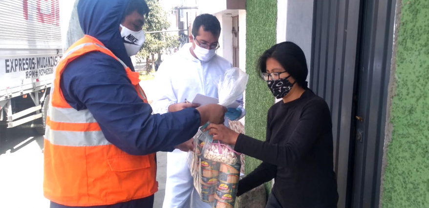 En la presente semana, personal de la Oficina de Bienestar Universitario entrega casa por casa los alimentos correspondientes al mes de junio. De manera personal, cada estudiante recibe un kit de alimentos que comprende bolsas de hojuela de avena, leche evaporada, yogurth, quinua avena, arroz, fideos, quinua, lentejas, conserva de filete de atún y aceite.
