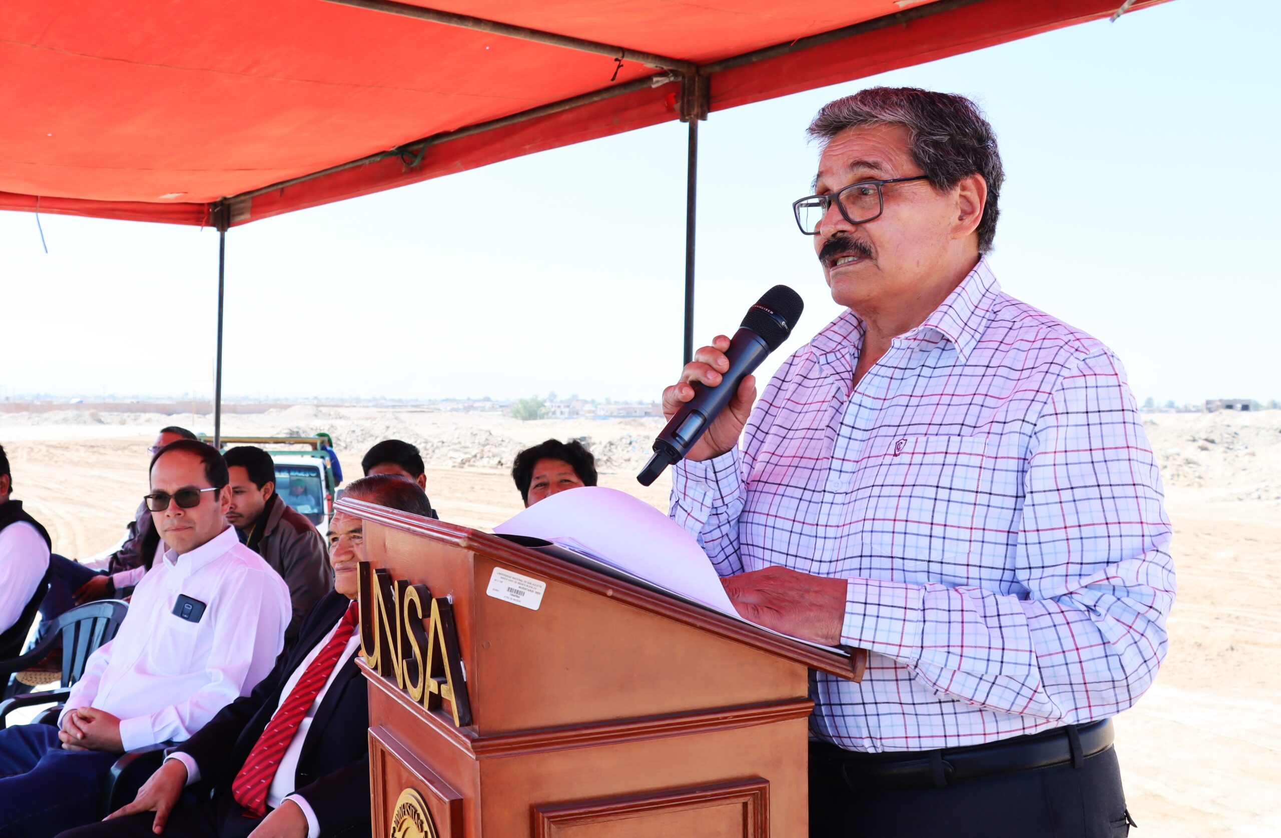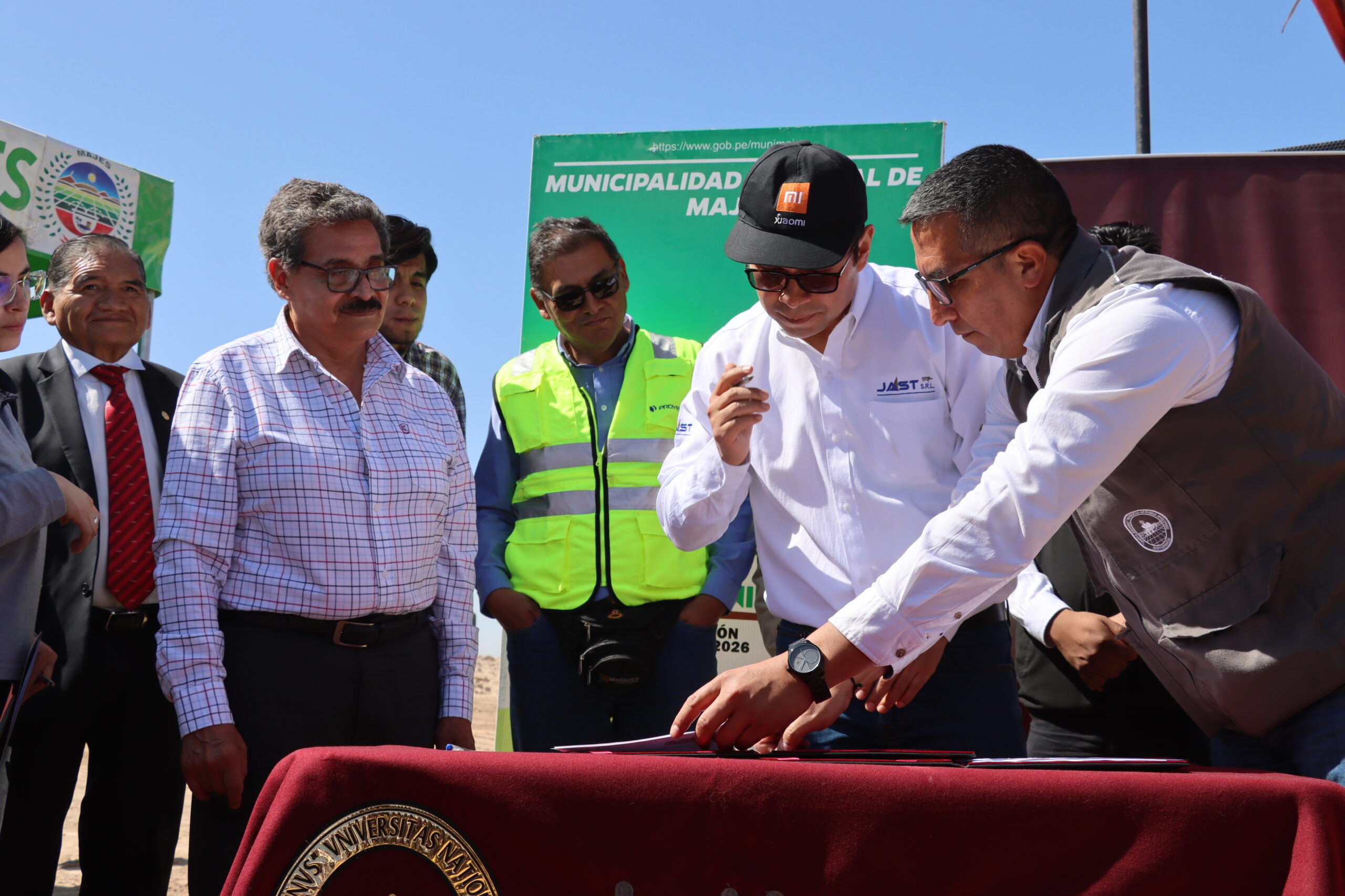 El rector de la UNSA, Dr. Hugo Rojas Flores, firmó el acta de entrega del terreno junto al representante de la empresa Jast (encargada de ejecutar los trabajos de construcción), Ing. Cesar Villalta, y el representante de la empresa supervisora Proyecta, Ing. Fernando Alejo. También estuvieron presentes el decano de la Facultad de Administración, Dr. Juan Luna Carpio, y el Decano de la Facultad de Agronomía, Dr. Héctor Medina Dávila, así como estudiantes, docentes y pobladores que ven en la obra una nueva etapa de desarrollo para su distrito.