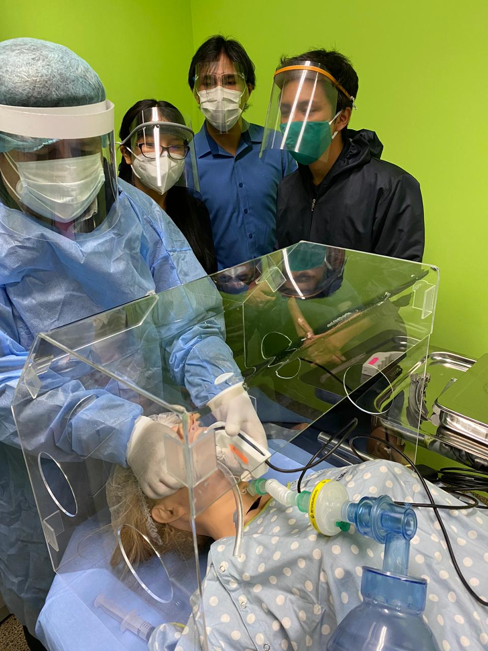 La Casa Agustina produjo 50 kits de videolaringoscopia; que comprenden un laringoscopio, un boroscopio, un dispositivo móvil y un aerosol box, este último sirve de barrera de protección contra las secreciones bronquiales y de saliva.