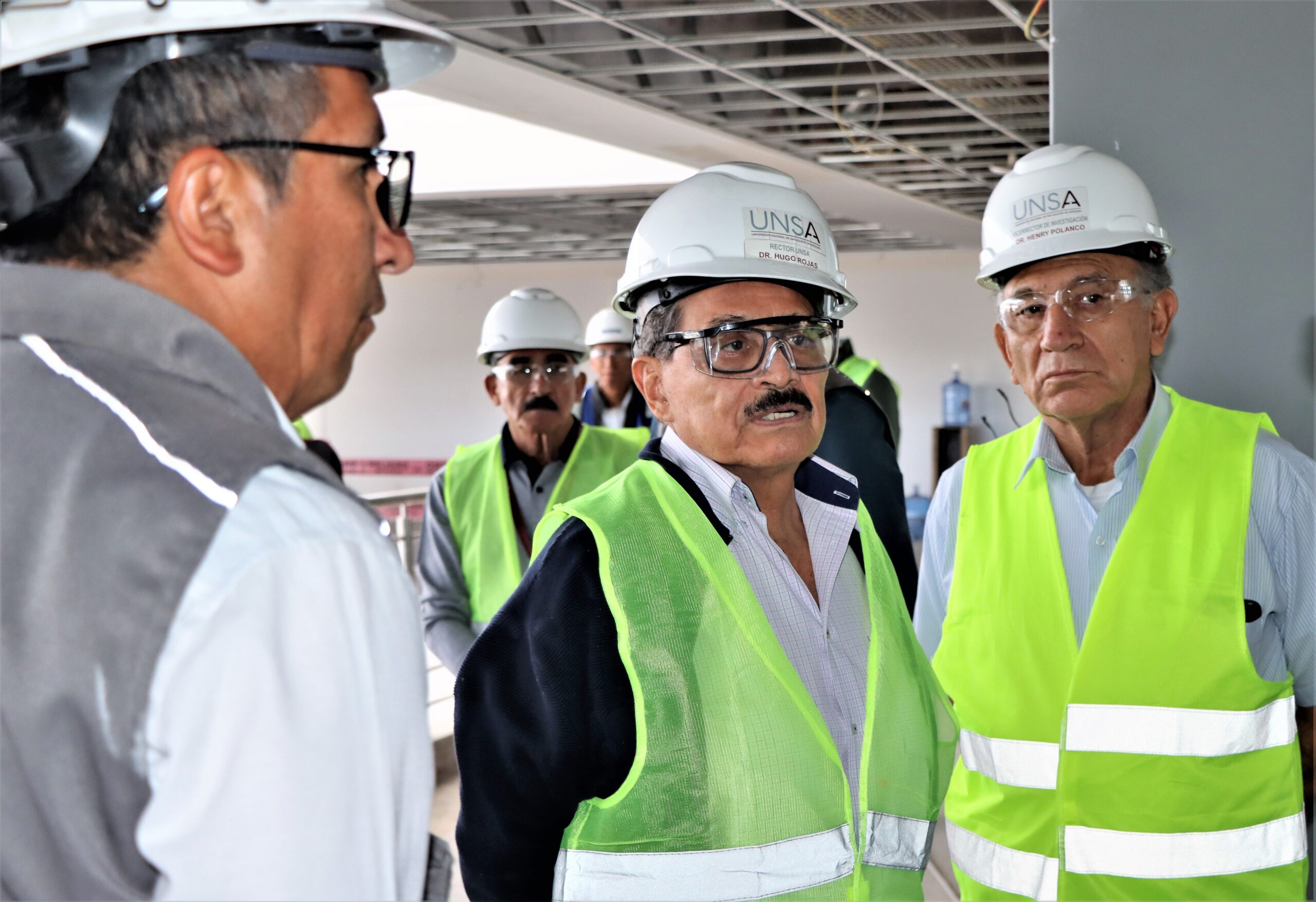 El rector de la UNSA, Dr. Hugo Rojas Flores, junto a otras autoridades, corroboraron el avance de los cinco niveles y el sótano, mediante una visita de inspección. Ya se encuentran en la fase de acabados en pisos, paredes e instalaciones eléctricas; en otros casos se preparan para la instalación de equipos.