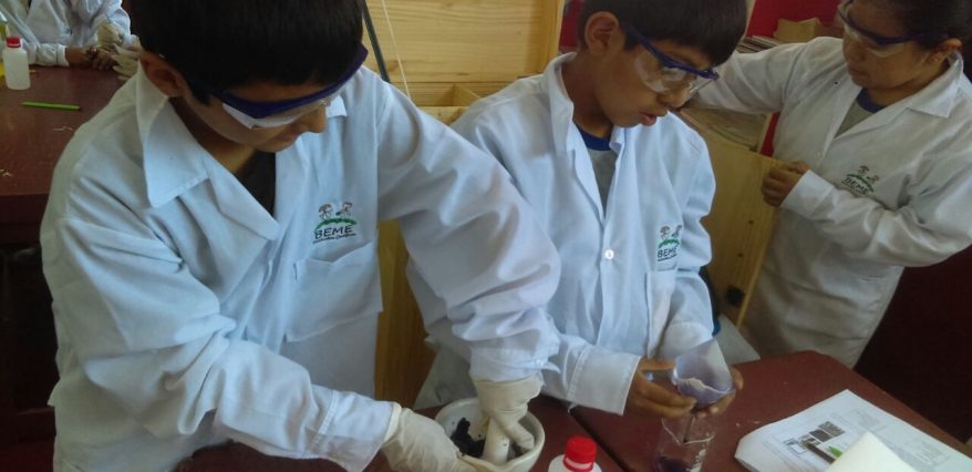 Los niños que formaron parte de este proyecto pudieron interactuar con las cajas de madera (loncheritas científicas) que contienen instrumental de laboratorio básico, reactivos y materiales de experimentación para Ciencia y Ambiente.