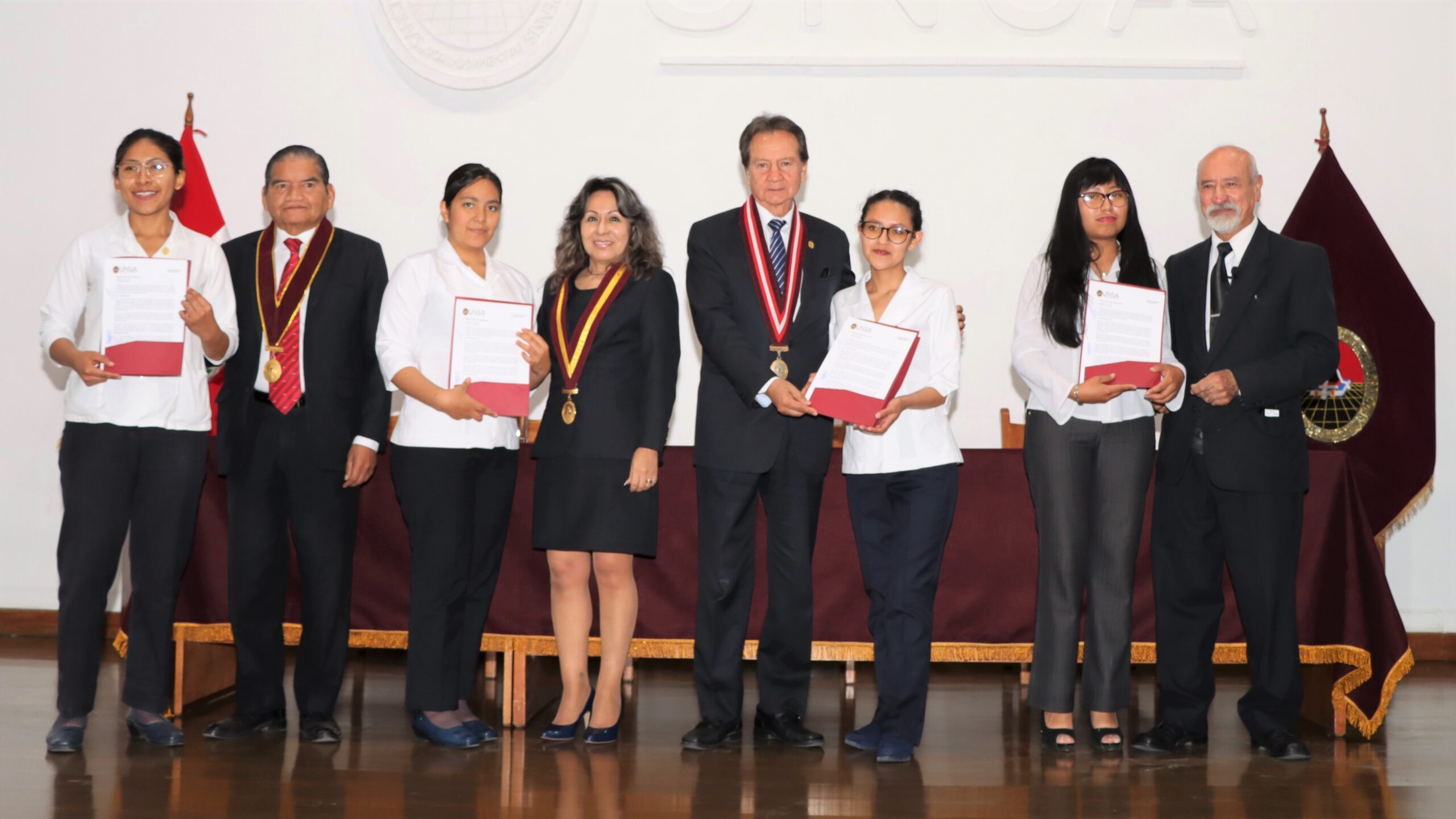 En tanto, autoridades universitarias, presididas por el Dr. Luis Cuadros Paz, Vicerrector Académico; acompañado por la Dra. Ruth Maritza Chirinos Lazo, Secretaria General; por el Dr. Juan Luna Carpio, representante de la Asamblea Universitaria y el presidente del CEU; entregaron las resoluciones que los acreditan como autoridades de la Casa Agustina en representación de los estudiantes.