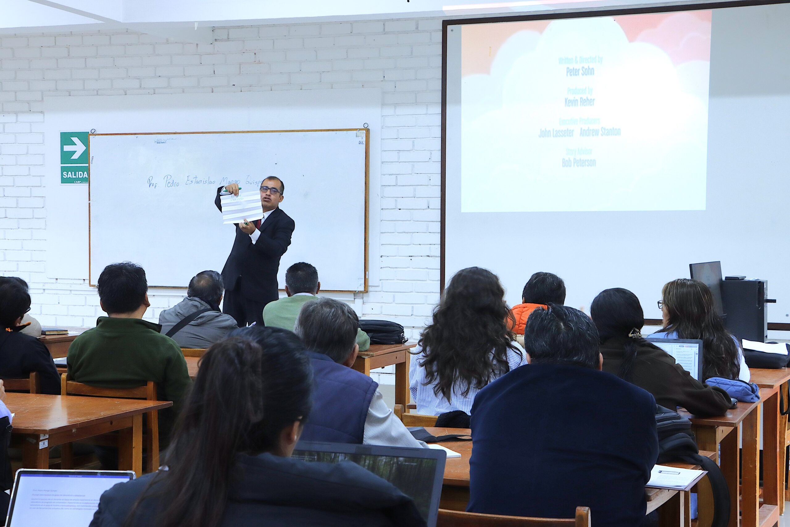 A su turno, el director de Desarrollo Docente, Dr. Oswaldo Turpo Gebera, precisó que la capacitación está dirigida inicialmente a 220 docentes recientemente nombrados y reincorporados, promoviendo espacios de intercambio de experiencias, evaluación y reconocimiento, como parte de una dinámica continua de mejora.