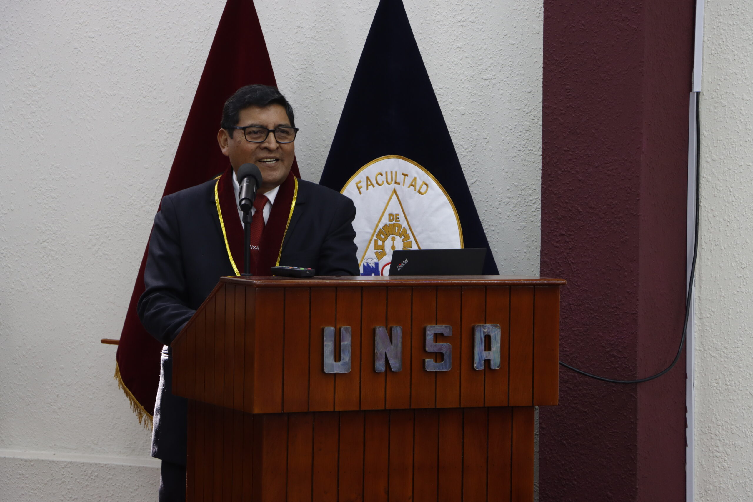 Como parte inaugural del evento, el decano de la Facultad de Economía, Dr. Edwin Bejar Zea, indicó que la casa agustina siempre colaborará con el desarrollo de estos eventos académicos que tienen por fin contribuir a la sociedad y al desarrollo del conocimiento. acotó que la facultad realiza, desde hace más de un año, eventos de alto nivel en favor de sus estudiantes y de la población en general.