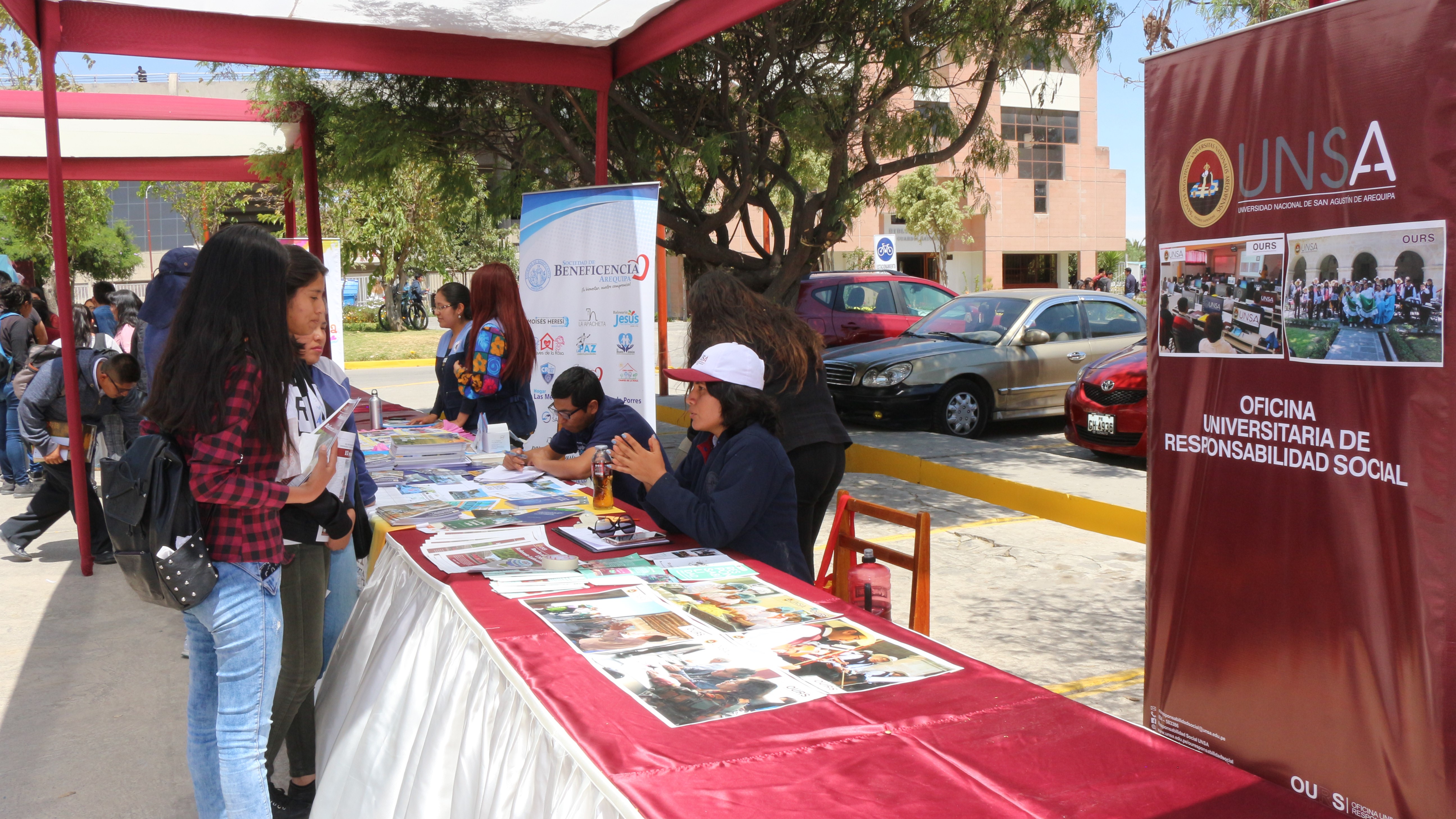 Con la finalidad que la comunidad universitaria se informen sobre diversos programas de inclusión, el Vicerrectorado Académico de la Universidad San Agustín de Arequipa a través de la Dirección Universitaria de Desarrollo Estudiantil – DUDE, realizó la primera feria informativa de inclusión universitaria que se desarrolló en el área de sociales.