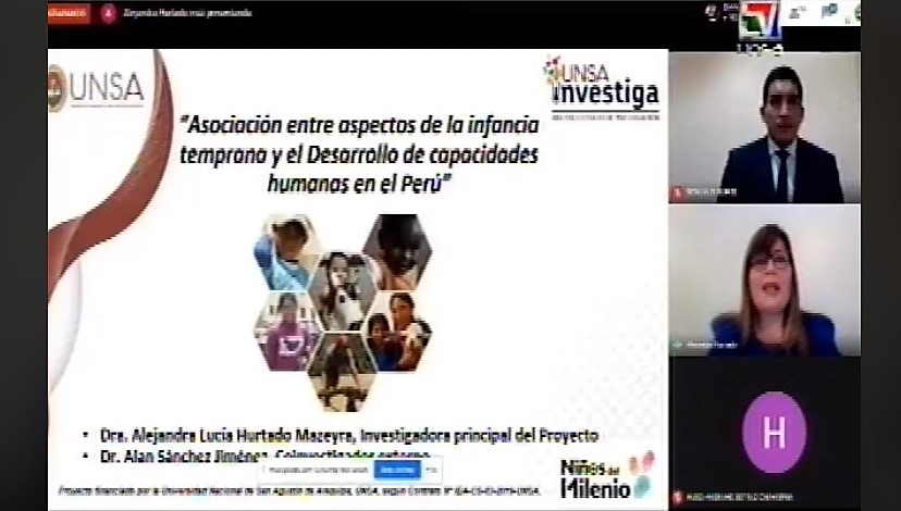 Un equipo multidisciplinario de investigadores de la Universidad Nacional de San Agustín de Arequipa, presentaron de manera virtual el Proyecto de Investigación “Asociación entre aspectos de la infancia temprana y el desarrollo de capacidades humanas en el Perú”, estudio financiado por el Programa UNSA Investiga que promueve el Vicerrectorado de Investigación.