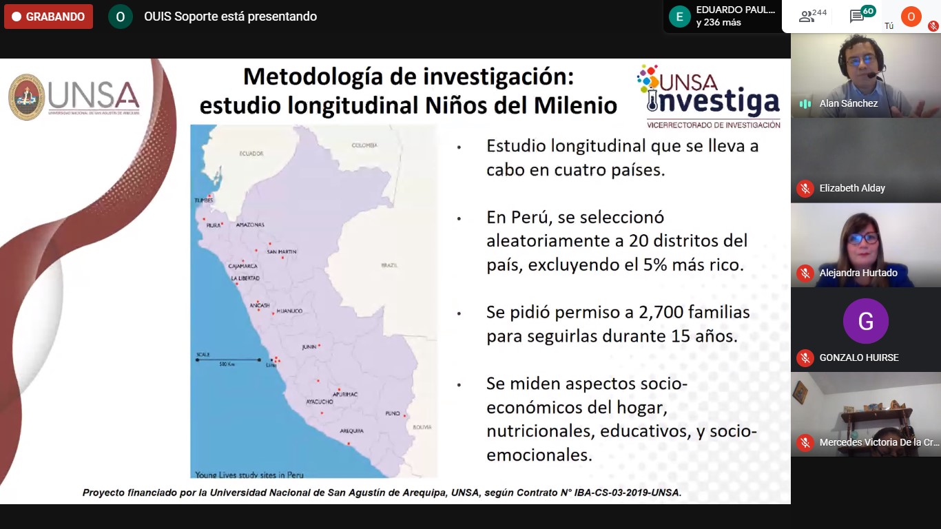 La Dra. Alejandra Hurtado Mazeyra, investigadora principal, resalto que el objetivo principal es medir la asociación entre aspectos de la infancia temprana y el desarrollo de capacidades humanas en Perú con el respaldo internacional del estudio Niños del Milenio.