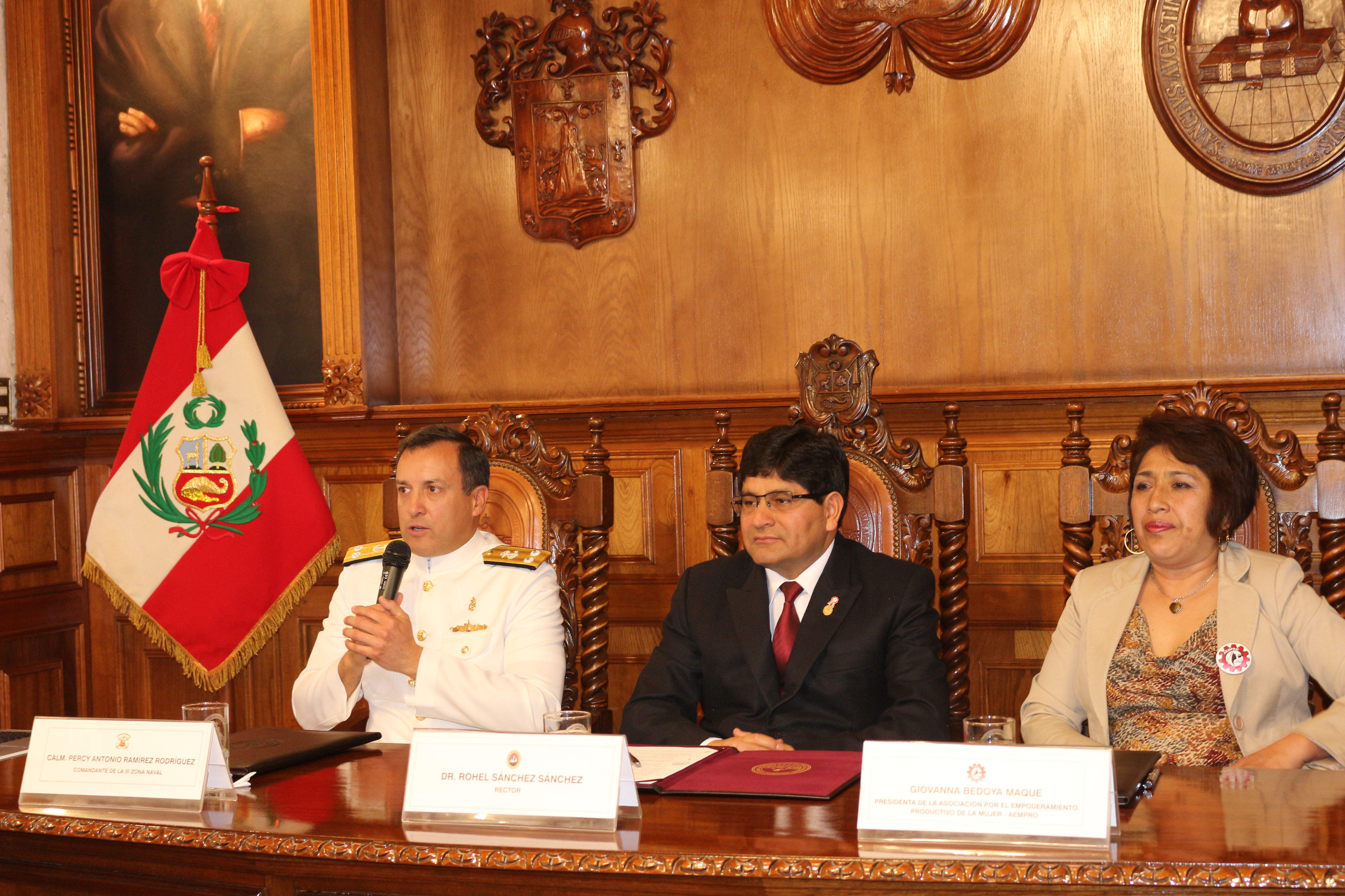 La alianza suscrita por el rector de la UNSA, Dr. Rohel Sánchez Sánchez, el Comandante de la Tercera Zona Naval, Contralmirante AP Percy Antonio Ramírez Rodríguez y la Sra. Giovanna Bedoya Maque, presidenta de “AEMPRO”, tendrá como primera acción el desarrollo del “Primer Foro Marítimo Regional: Mirando al Mar” en el mes de setiembre.