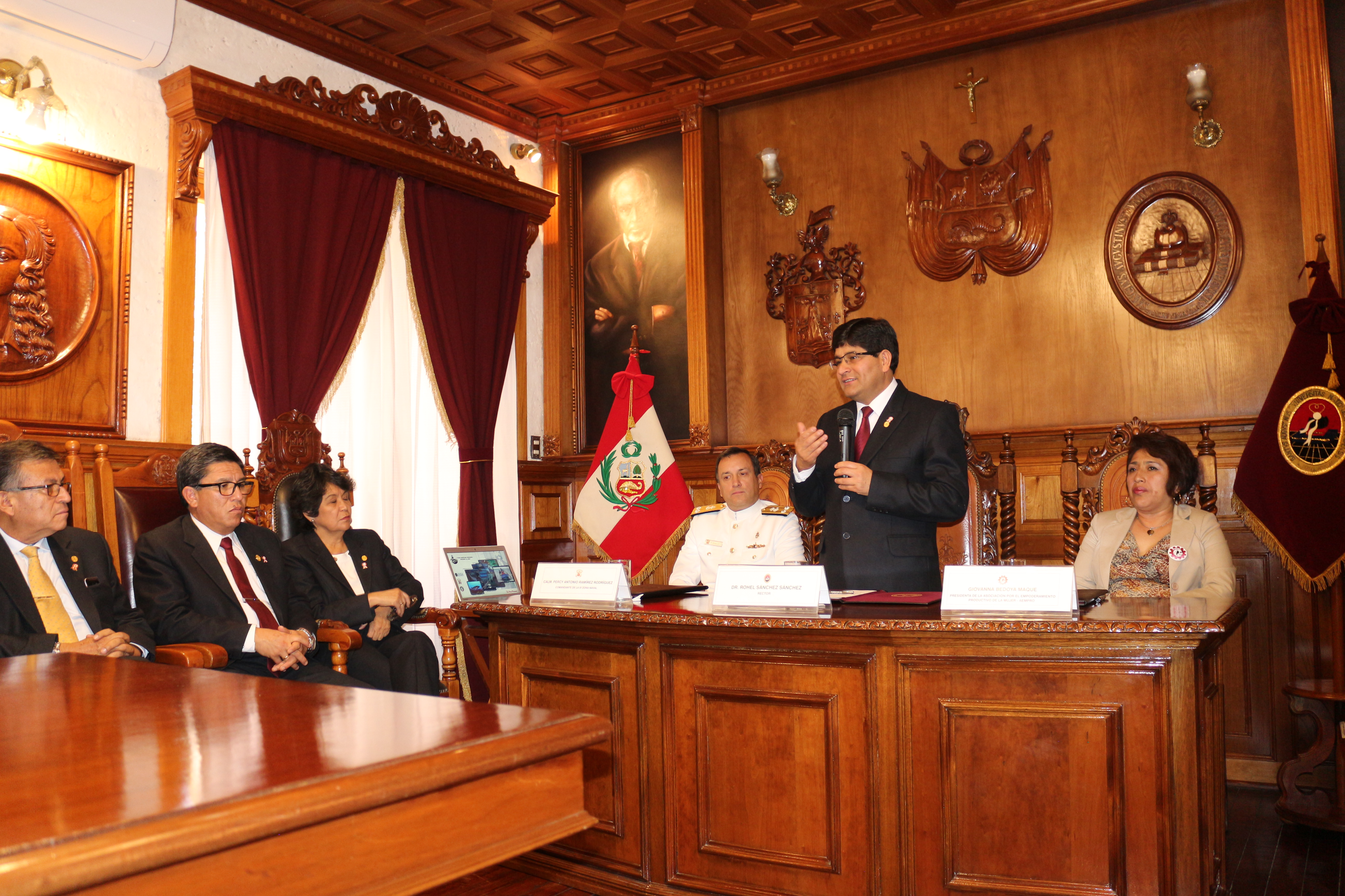 Por su parte, el Rector de la UNSA, Dr. Rohel Sánchez Sánchez hizo recuerdo de los diferentes proyectos de investigación marinos que la universidad desarrolla. Uno de ellos es el convenio con la NASA mediante el cual se podrá monitorear e identificar embarcaciones marinas.  Otro, es la elaboración de un ungüento contra el cáncer de piel a  base de algas marinas. También, se trabaja con diferentes instituciones en crianza de lenguado y capacitación de los pescadores artesanales.
