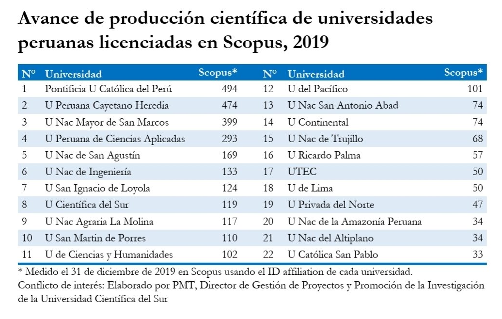Resaltar que a lo largo del 2019, la Universidad San Agustín de Arequipa fue reconocida por diferentes organismos, la Editorial ELSEVIER y CONCYTEC le otorgaron el Premio Excelencia por ser la institución académica con mayor número de publicaciones en Scopus, precisamente.