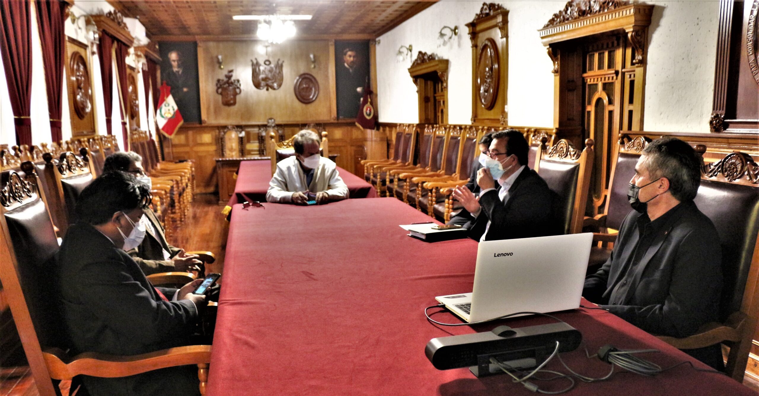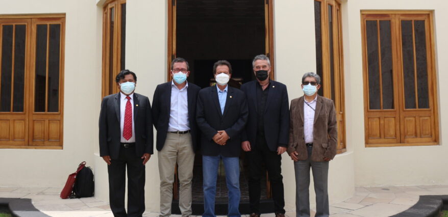 Representantes de la Red ALFAMED, visitaron el rectorado para dialogar con el Vicerrector Académico, Dr. Luis Cuadros Paz y de manera virtual con el Vicerrector de Investigación, Dr. Henry Polanco Cornejo; además del coordinador del congreso, Dr. Gerber Pérez Postigo, docente de la Facultad de Ciencias de la Educación de la UNSA.
