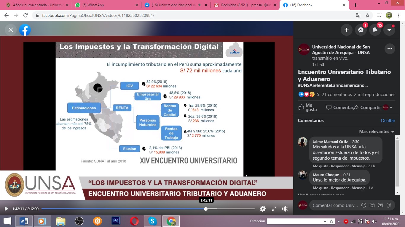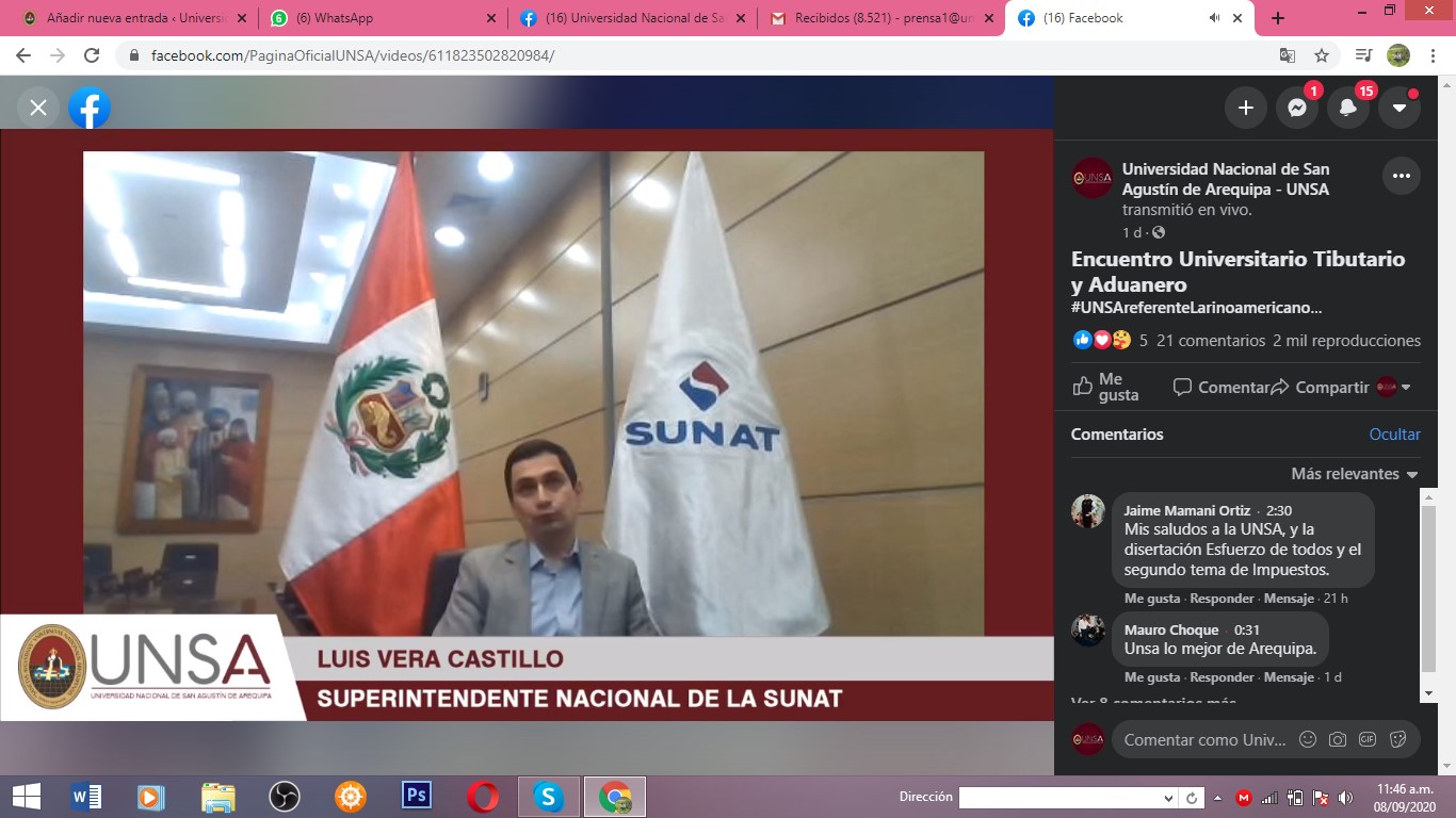 Con presencia de la Universidad Nacional de San Agustín de Arequipa se realizó el Encuentro Universitario Tributario y Aduanero, reunión virtual que contó con la participación de los principales funcionarios de la Superintendencia Nacional de Aduanas y de Administración Tributaria.