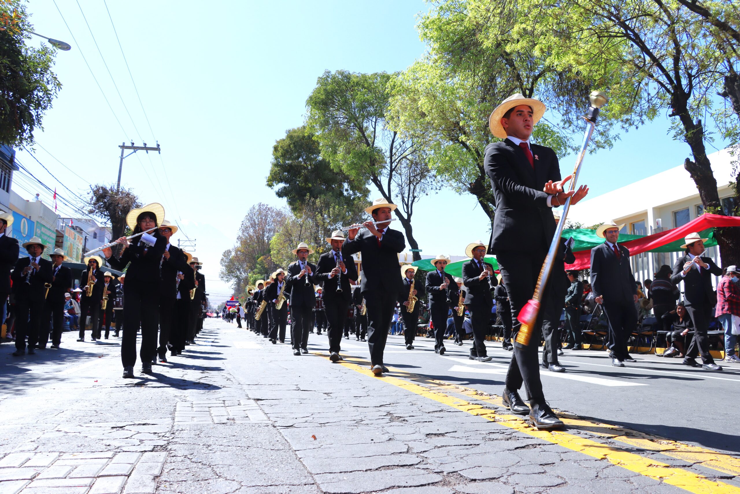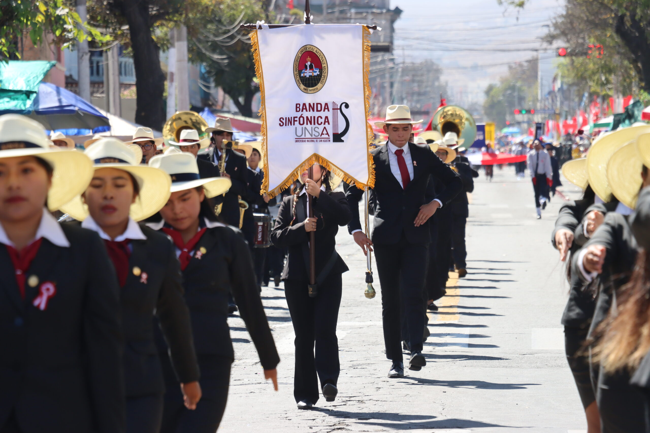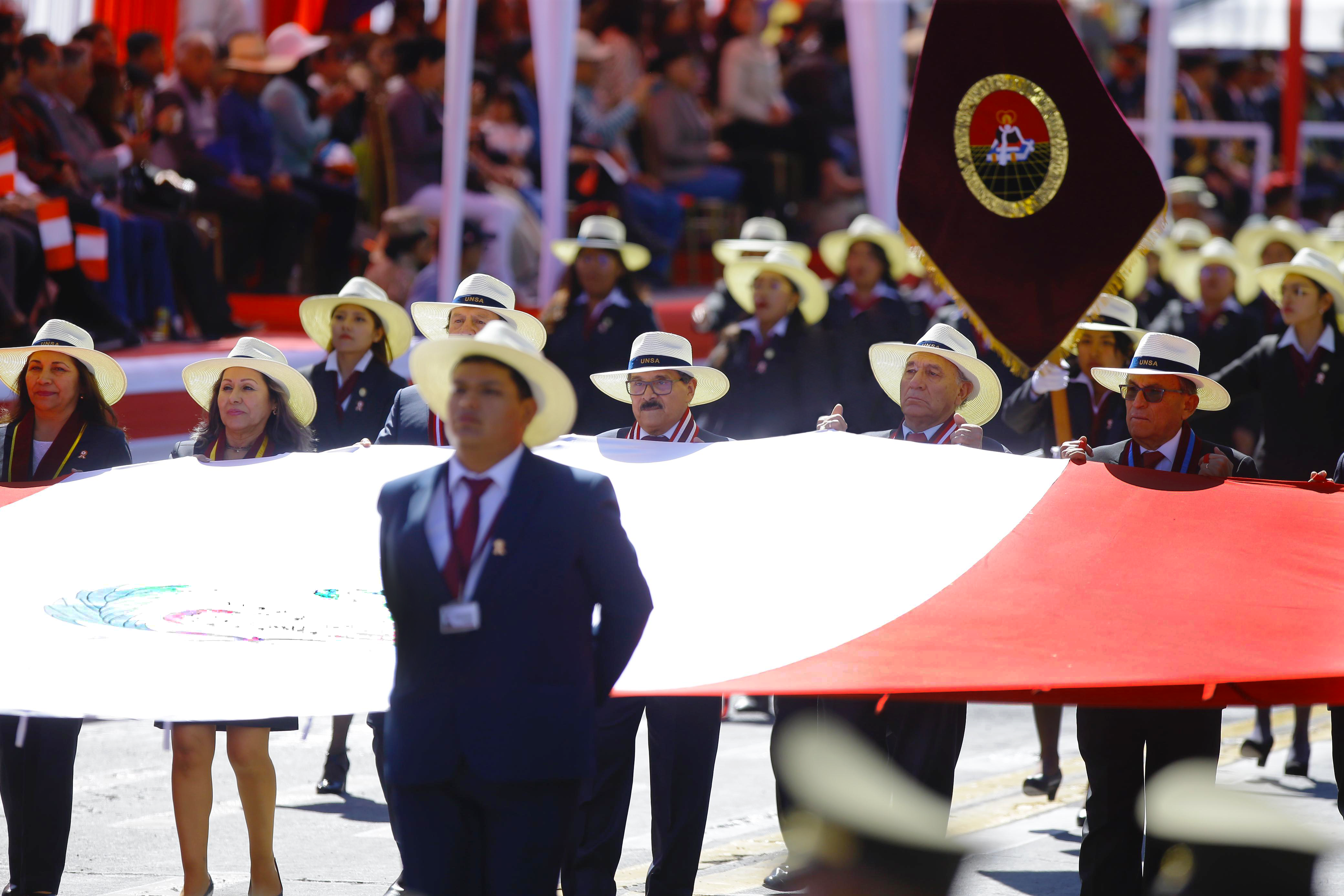 En el desfile, la UNSA representó su legado y su rol en el avance educativo y cultural de la región. La participación incluyó a sus autoridades, escolta, batallón de estudiantes y su Banda Sinfónica.