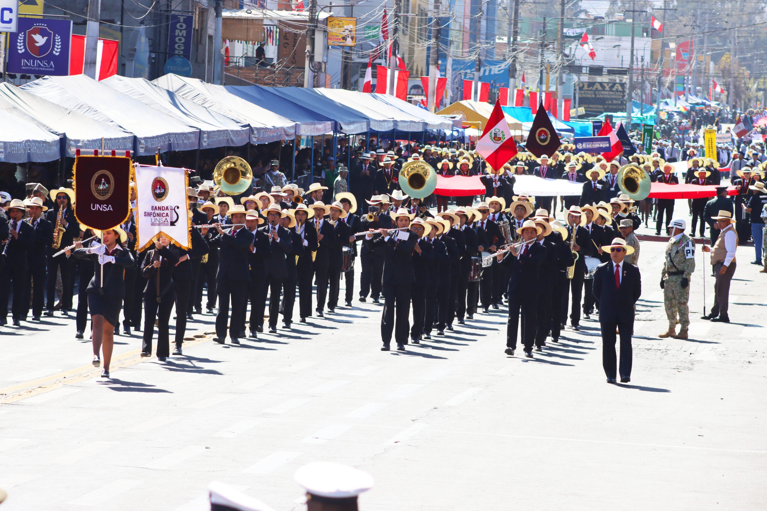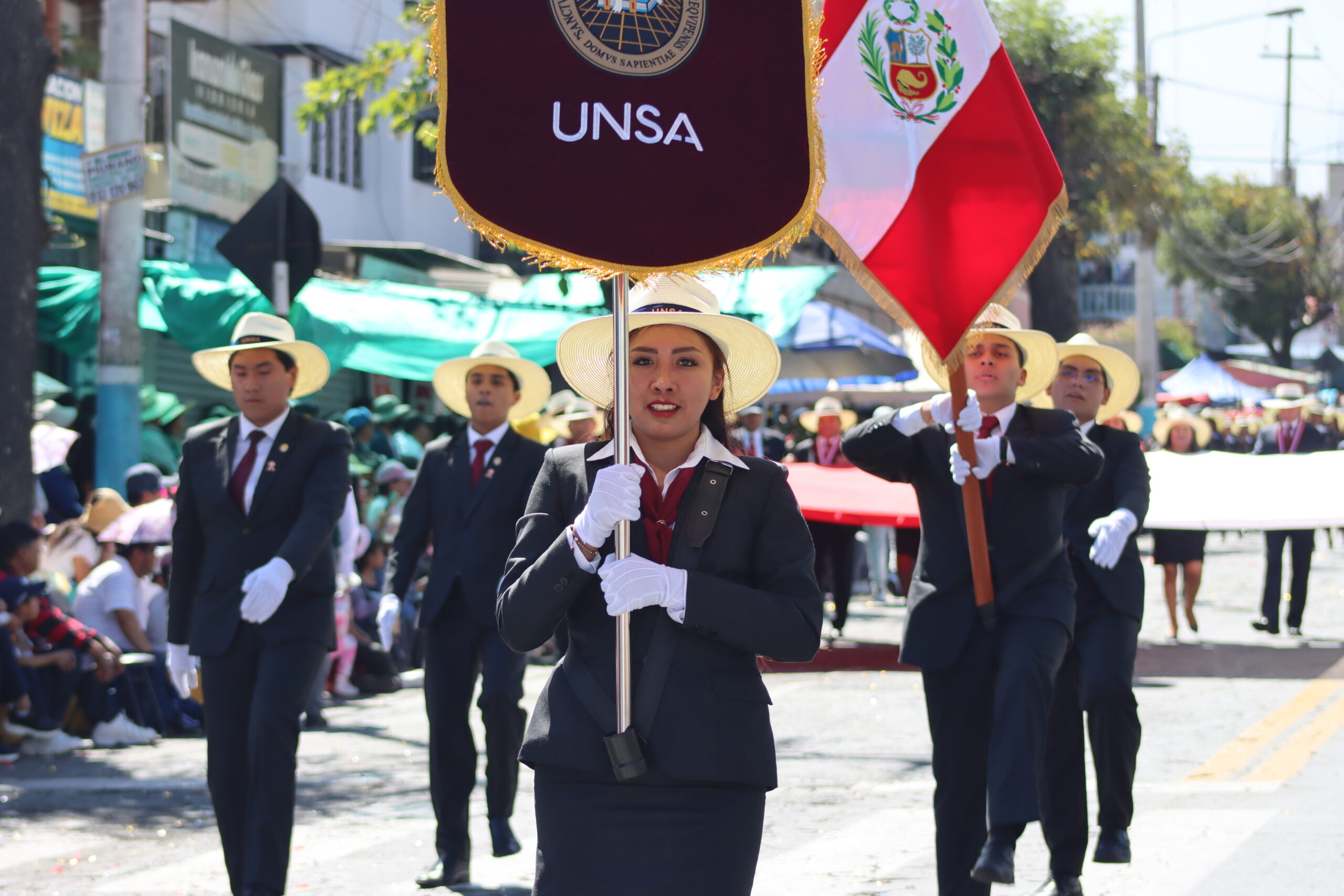 En el desfile, la UNSA representó su legado y su rol en el avance educativo y cultural de la región. La participación incluyó a sus autoridades, escolta, batallón de estudiantes y su Banda Sinfónica.