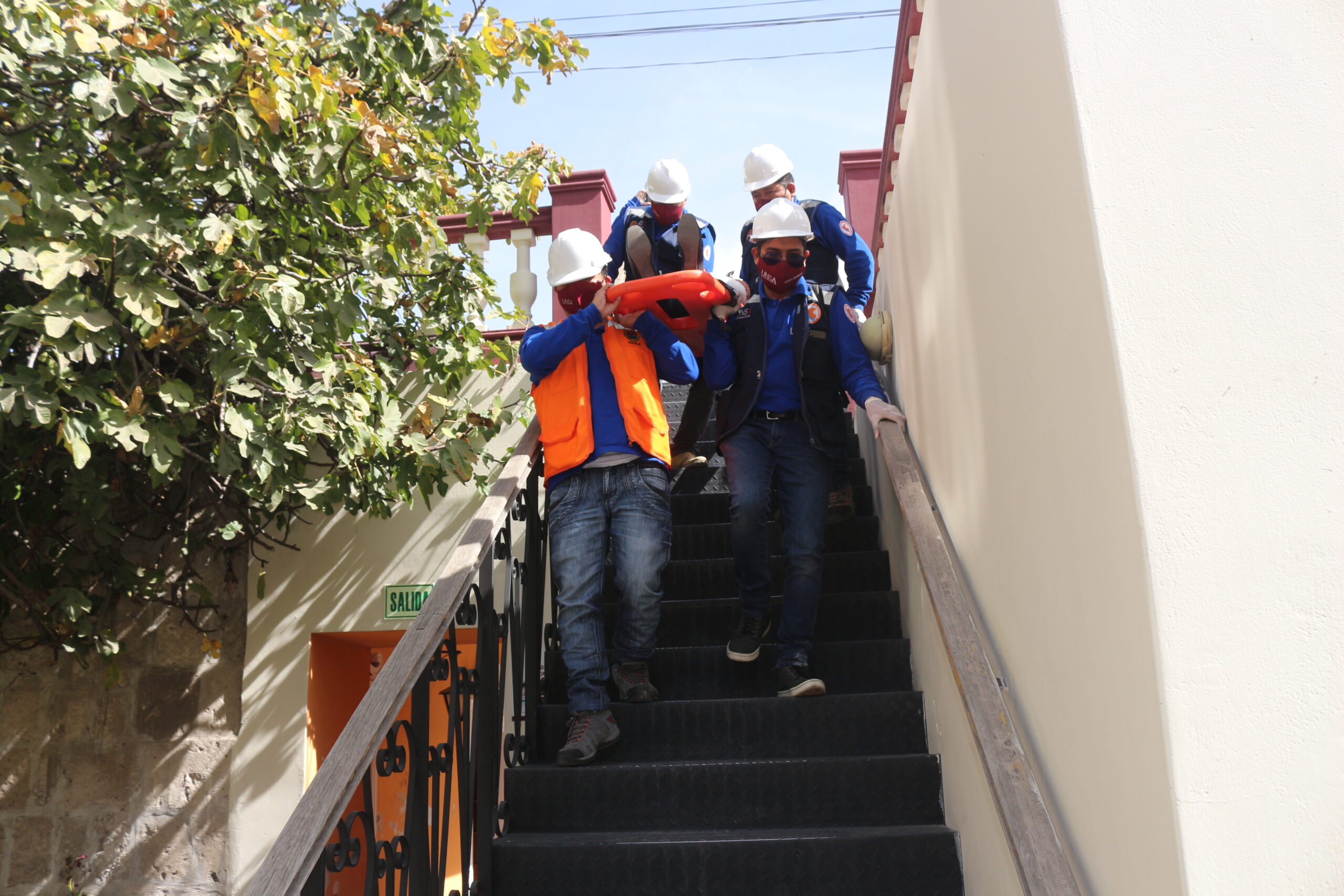 El personal se situó en las zonas seguras de esta instalación, alejándose de paredes, vidrios o cualquier material que representase un peligro. También se simulo un amago de incendio, se evacuó a heridos y se realizó la atención de personas accidentadas.