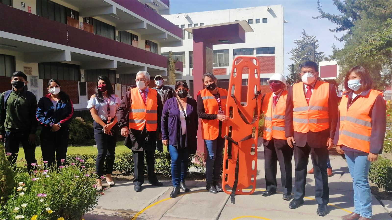 A las 10 de la mañana, por ejemplo, se activaron las sirenas en el rectorado de la UNSA. Las autoridades como el Vicerrector Académico; Dr. Luis Cuadros Paz y el Vicerrector de Investigación; Dr. Henry Polanco, participaron de la simulación.