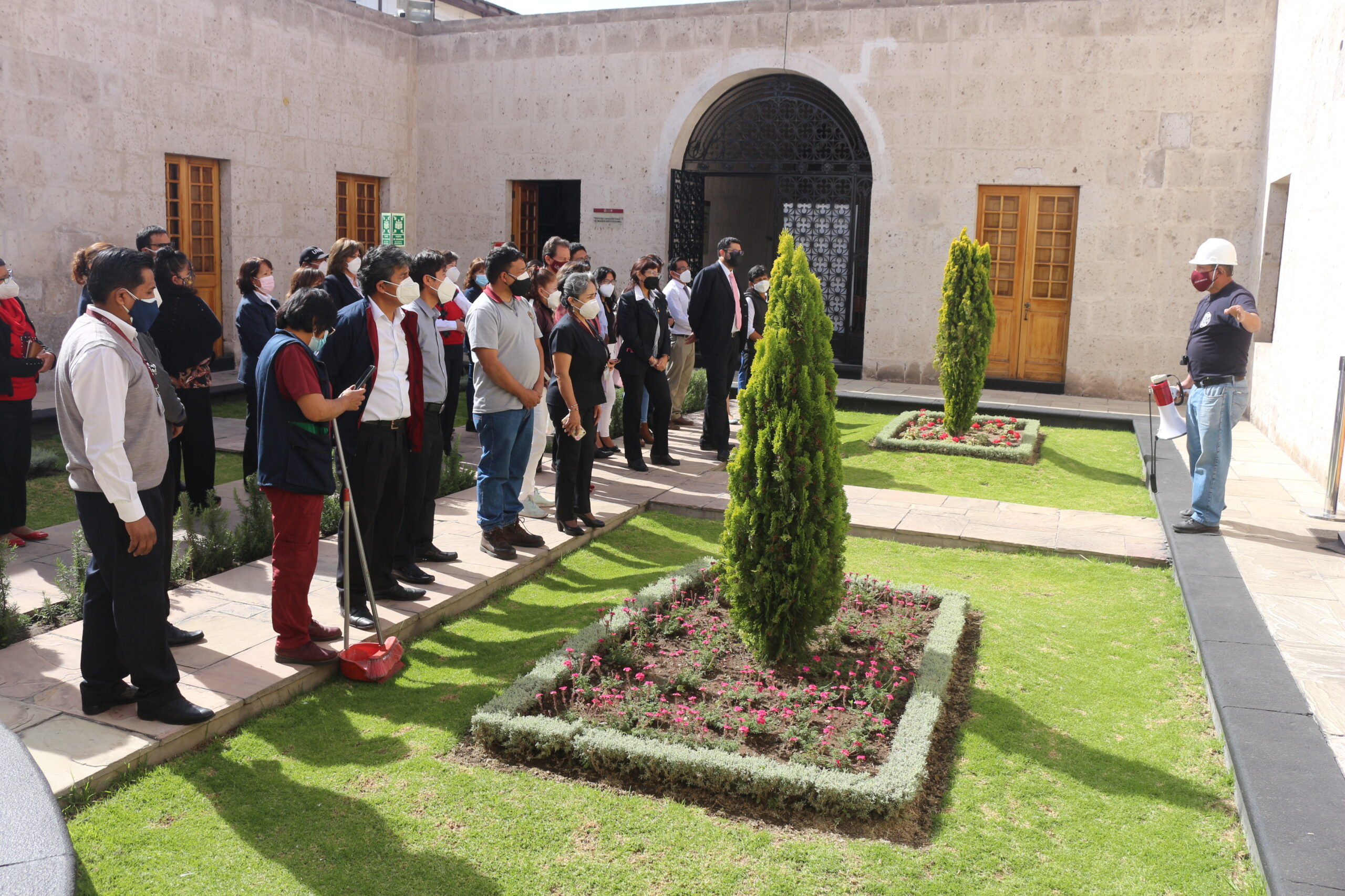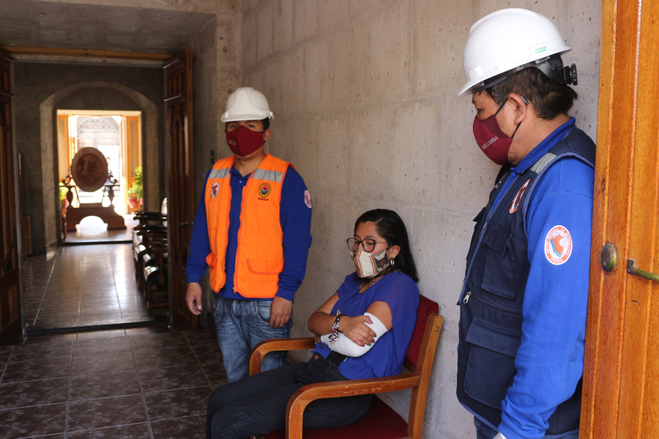 A las 10 de la mañana, por ejemplo, se activaron las sirenas en el rectorado de la UNSA. Las autoridades como el Vicerrector Académico; Dr. Luis Cuadros Paz y el Vicerrector de Investigación; Dr. Henry Polanco, participaron de la simulación.