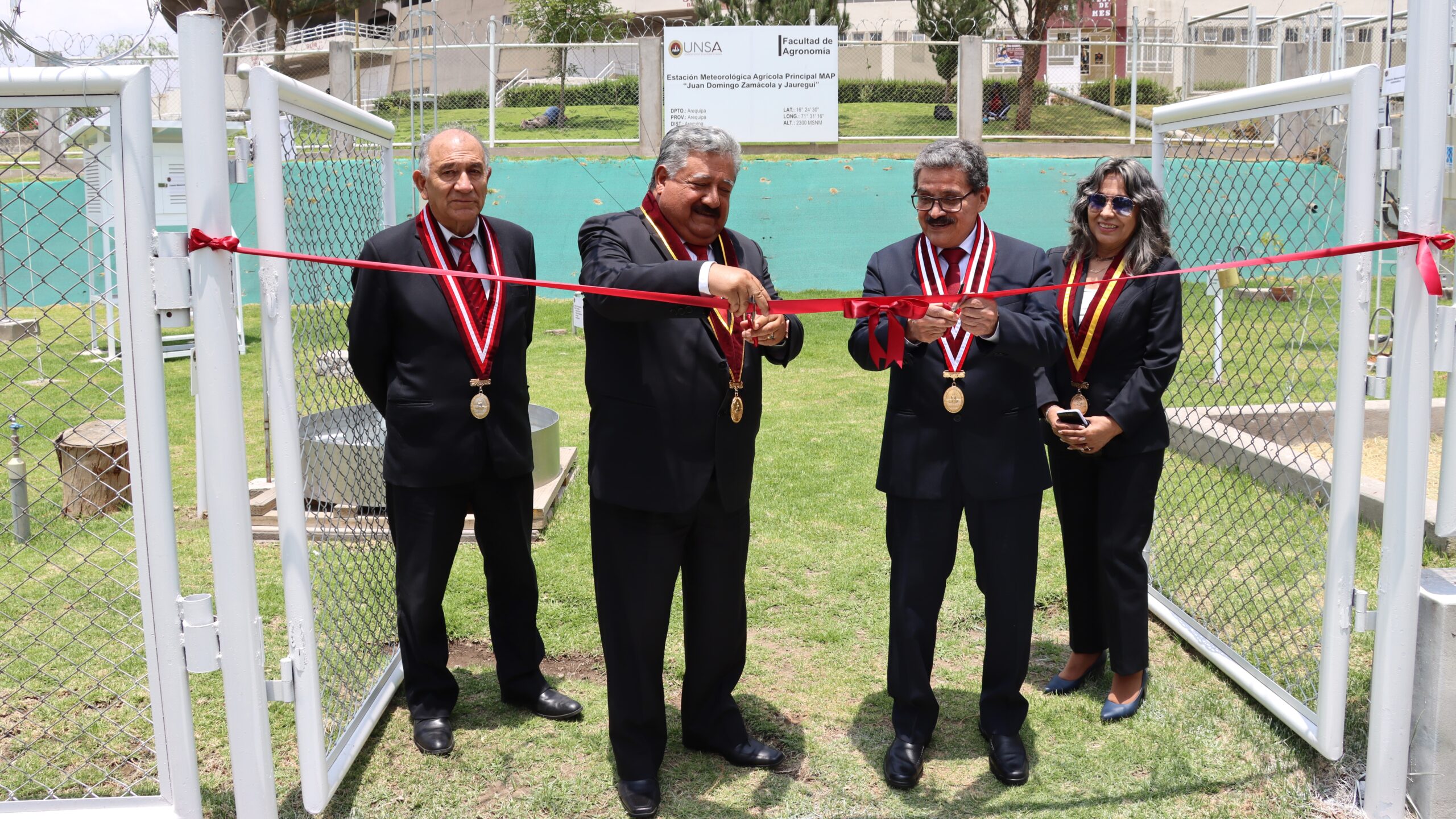 Con una inversión de S/470 000, el Dr. Hugo Rojas Flores, rector de la Universidad Nacional de San Agustín de Arequipa (UNSA) y el Dr. Howard Pinto Arana, decano de la Facultad de Agronomía, inauguraron la estación agrometereológica, que brindará información oportuna para realizar investigaciones.