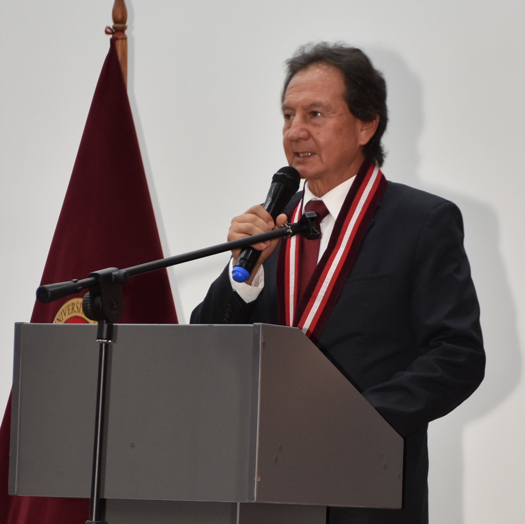 Acto protocolar que presidió el rector, Dr. Hugo Rojas Flores y contó con la participación de la Secretaria General, Dra., Ruth Maritza Chirinos Lazo, Directora de la DUDE, Dra. Jeannette Bengoa Lazarte, jefa de la Oficina de Gestión de Asuntos Académicos, Dra. Vanessa Oviedo Medrano, demás autoridades universitarias, egresados e invitados.