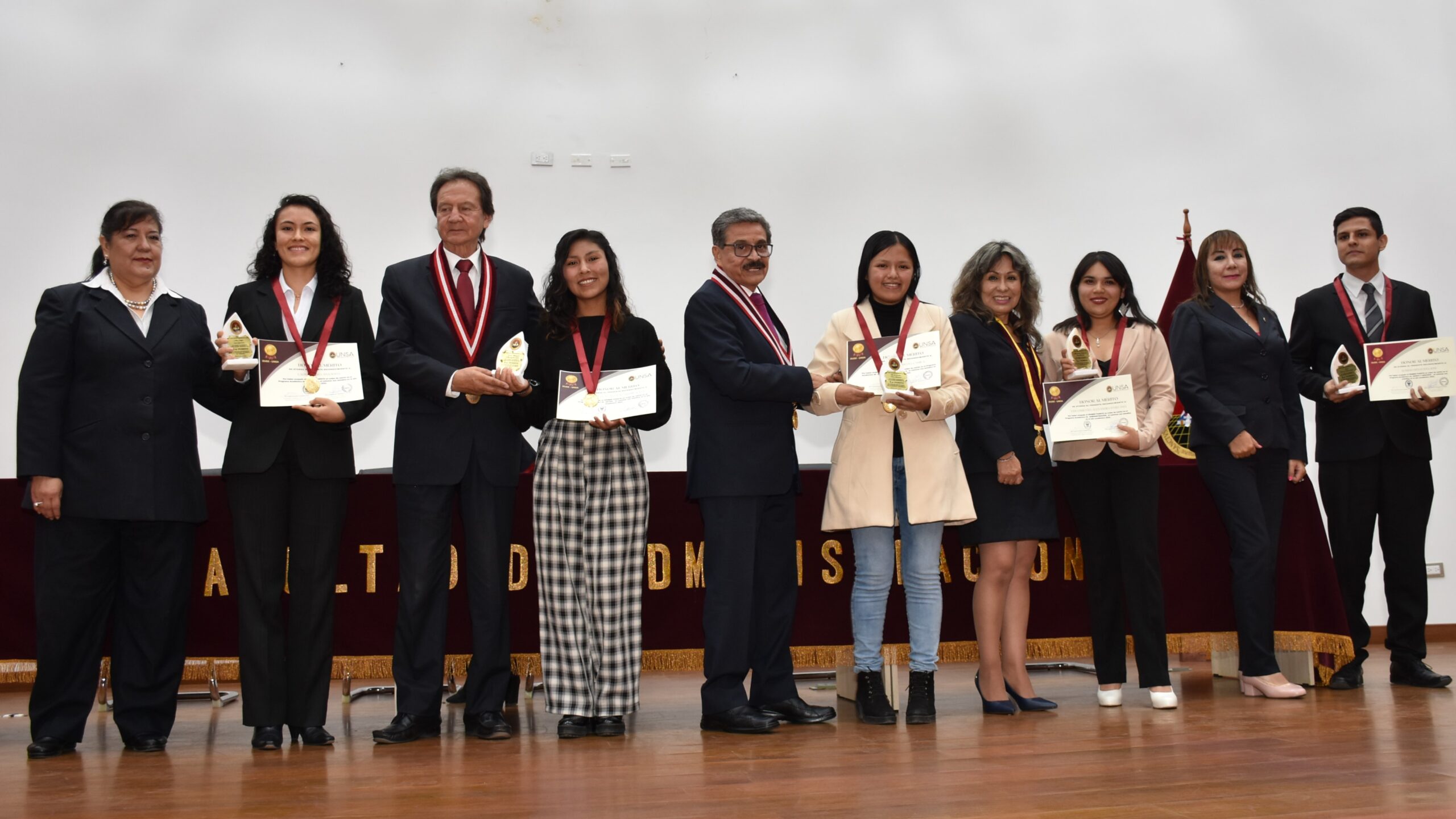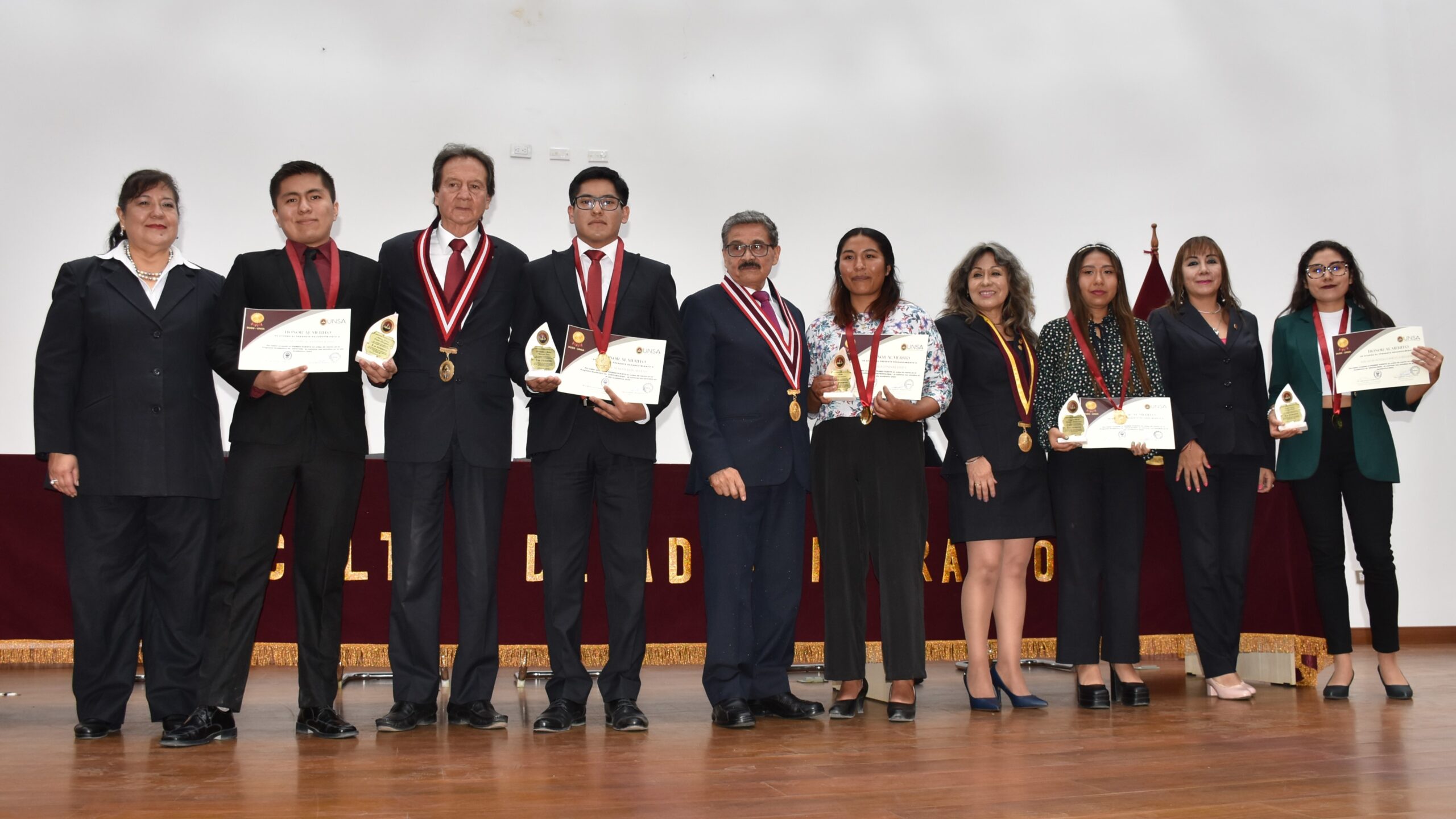 Cabe resaltar que en esta ceremonia, que se llevó a cabo en el auditorio de la Facultad de Administración, las autoridades agustinas, entregaron diplomas de reconocimiento, medallas de honor y galvanos (recordatorio con inscripción) a los jóvenes de las 47 Escuelas Profesionales en reconocimiento a su esfuerzo y dedicación.