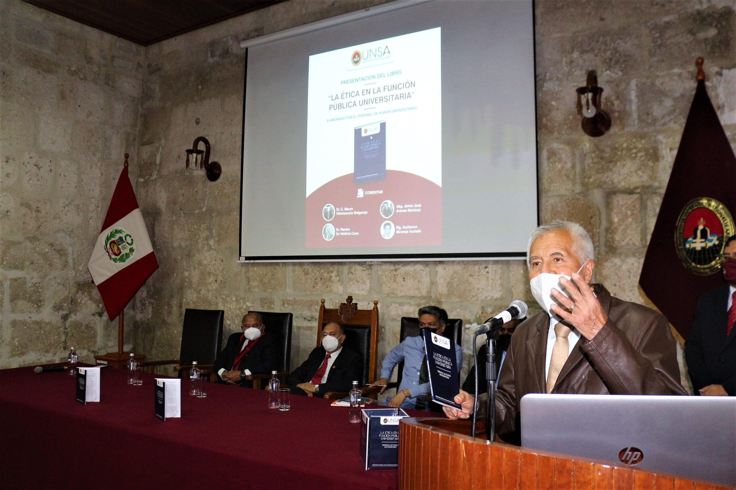 A fin de familiarizar las normas y conductas de ética dentro del quehacer universitario, el Tribunal de Honor Universitario de la Universidad Nacional de San Agustín de Arequipa presentó el libro “La ética en la función pública universitaria”