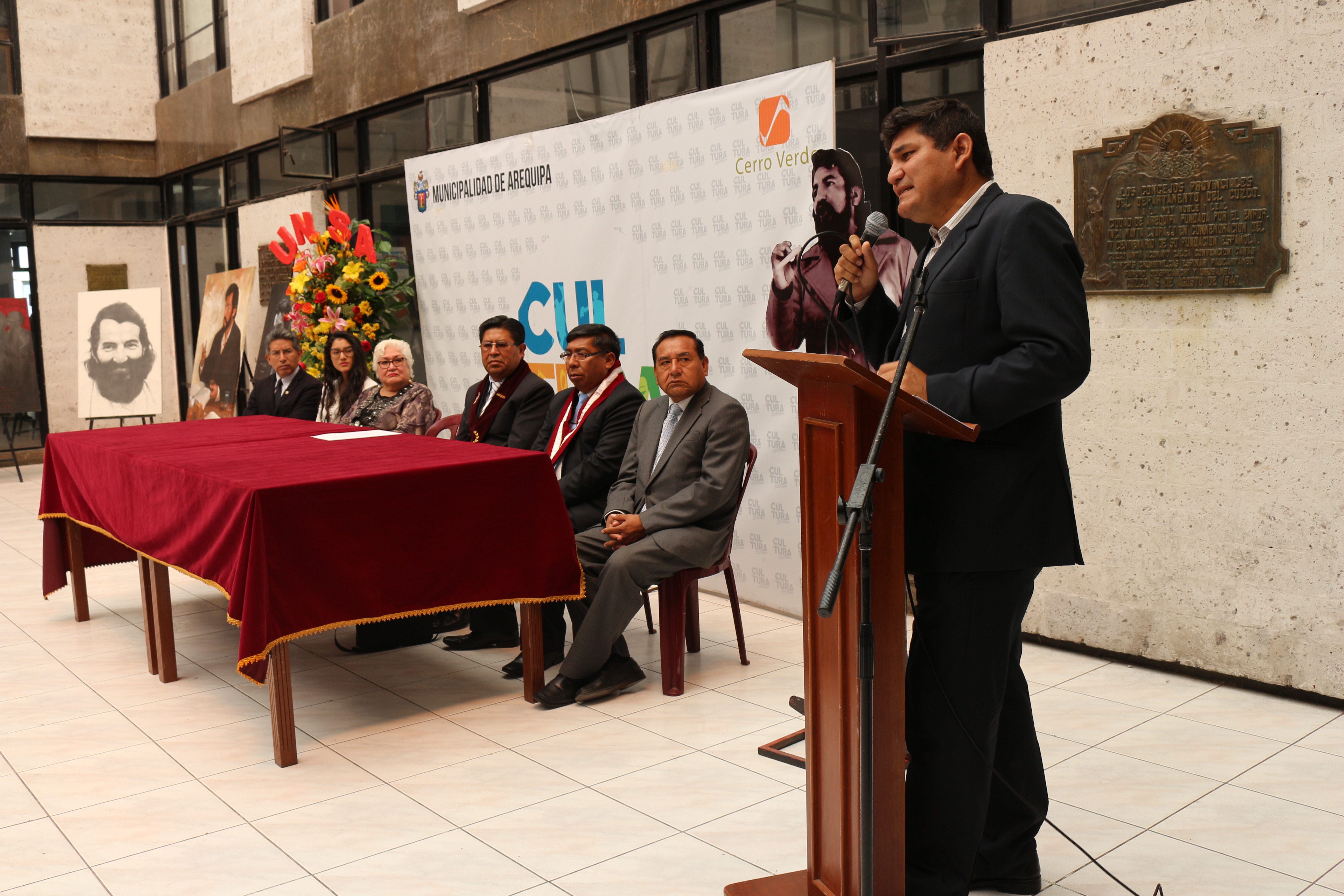 Las autoridades de la Universidad Nacional de San Agustín de Arequipa participaron en la Ceremonia de Homenaje a Horacio Zeballos Gámez, a 35 años de su partida, organizada por la Municipalidad de Arequipa. En la ceremonia, que se realizó en el primer patio del Portal de la Municipalidad, se dieron cita diferentes autoridades de la ciudad. El congresista Horacio Zeballos Patrón, presidio los actos de homenaje junto a familiares.