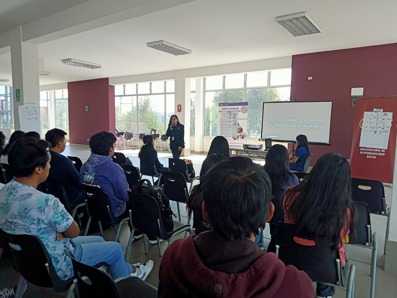 Fueron 40 jóvenes voluntarios quienes recibieron la charla en el segundo piso del Comedor Universitario, área de Sociales. Durante el evento, la Psicol. Josselyn Alvarado abordó el tema de primeros auxilios psicológicos y la Lic. Enf. Elizabeth Rosas habló sobre estilos de vida saludable.