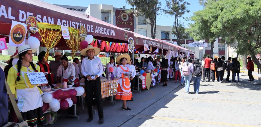 Puestos de comida arequipeña, inglesa y francesa instalados en el estacionamiento del Área de Sociales de la UNSA atrajeron la atención de la comunidad agustina el último miércoles 09 de agosto. Los asistentes degustaron platillos ofrecidos por los estudiantes de la Facultad de Ciencias de la Educación en la “Feria de Integración Cultural Peruana, Inglesa y Francesa”.