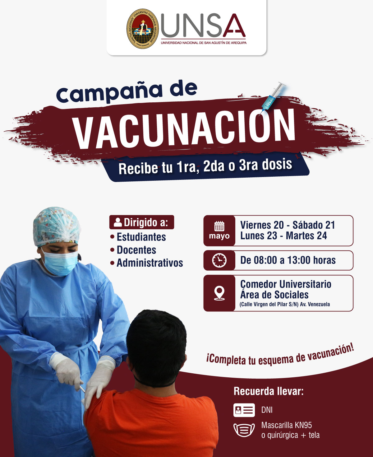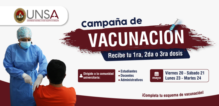 A fin de disminuir la brecha de los no vacunados dentro de su comunidad universitaria, la Universidad Nacional de San Agustín de Arequipa realizará una maratónica jornada de vacunación dirigida a sus estudiantes