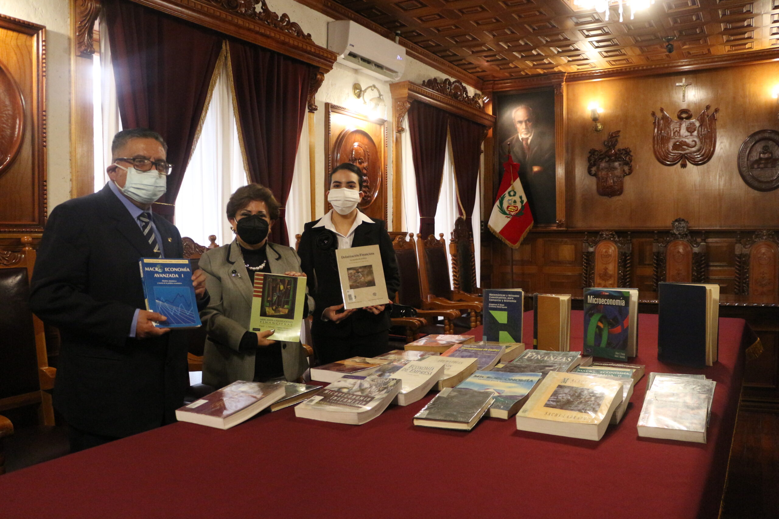 Funcionarios del Banco Central de Reserva del Perú – sucursal Arequipa, visitaron las instalaciones del rectorado de la UNSA para entregar 3773 títulos, entre libros, revistas y publicaciones sobre economía y temas afines, que eran parte de su biblioteca institucional.