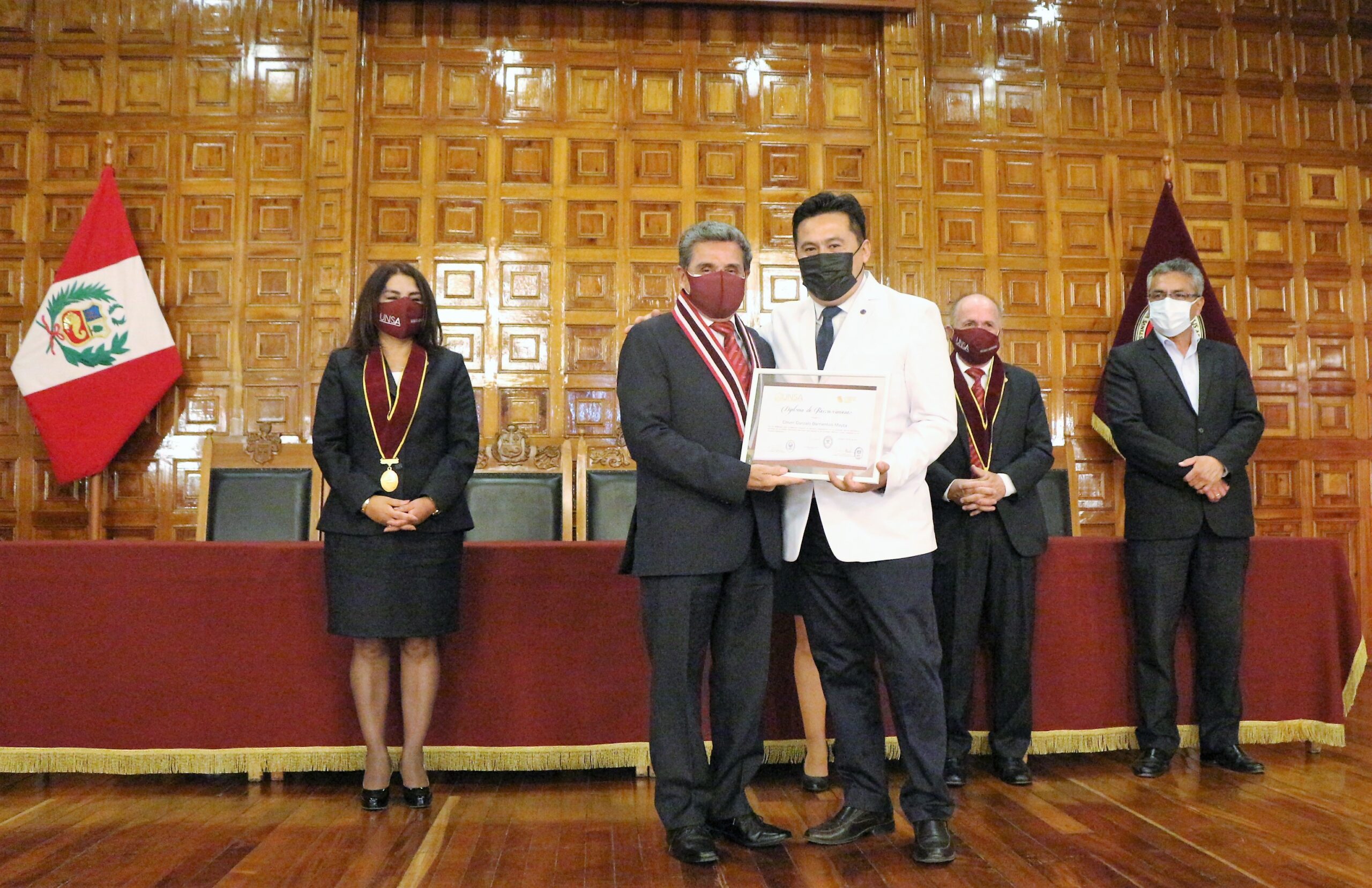 Destacando su “labor profesional, vocación de servicio y compromiso con la sociedad” el Dr. Hugo Rojas Flores, rector; Dr. Richard Paredes, decano de la facultad de Medicina; Dra. Aurora Manchego, decana de la Facultad de Enfermería, Dra. Maritza Chirinos Lazo, Secretaria General, reconocieron a cada uno de los profesionales egresados de nuestra universidad que participaron en el complejo procedimiento que se realizó en el Hospital Goyeneche y tuvo una duración aproximada de 07 horas.