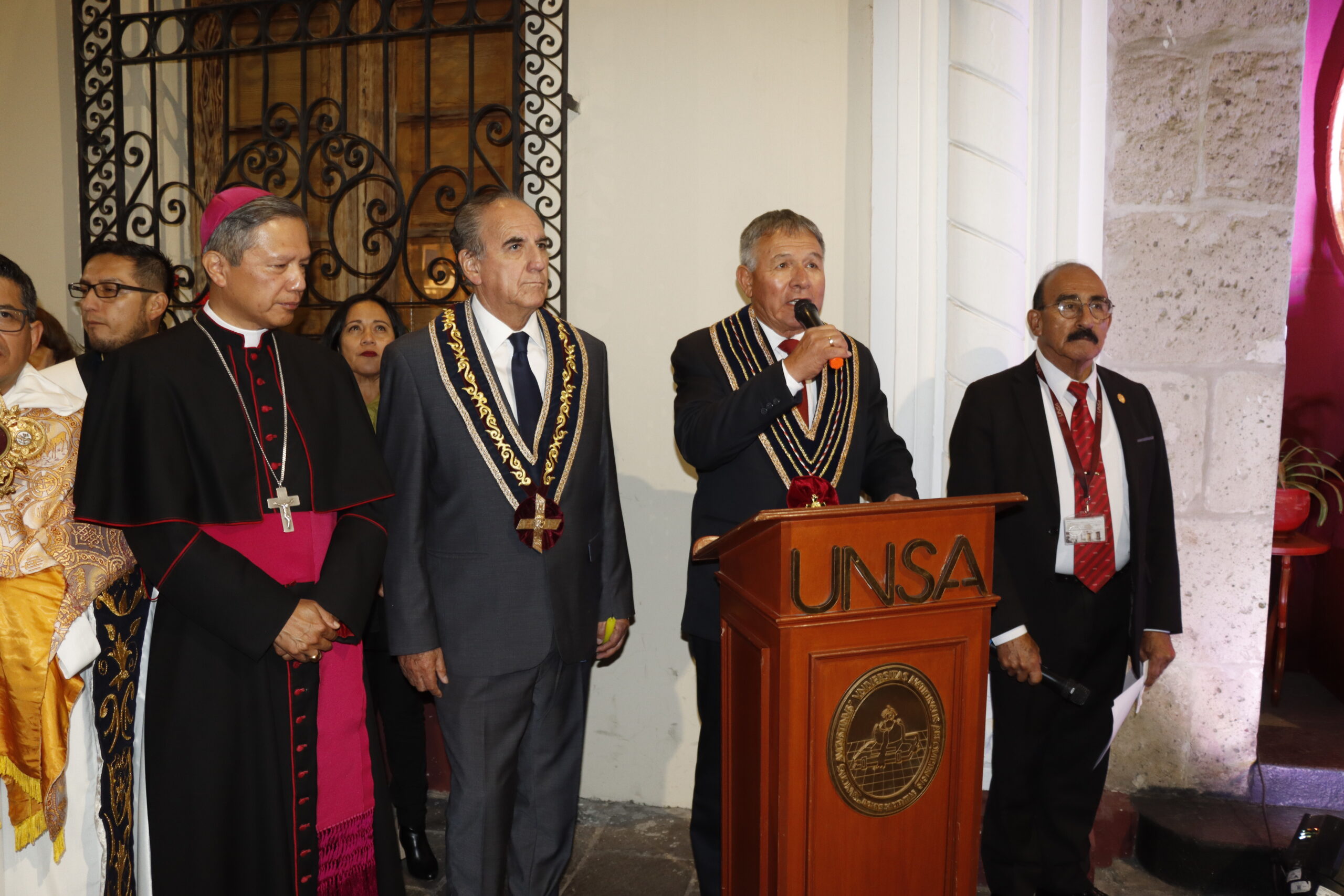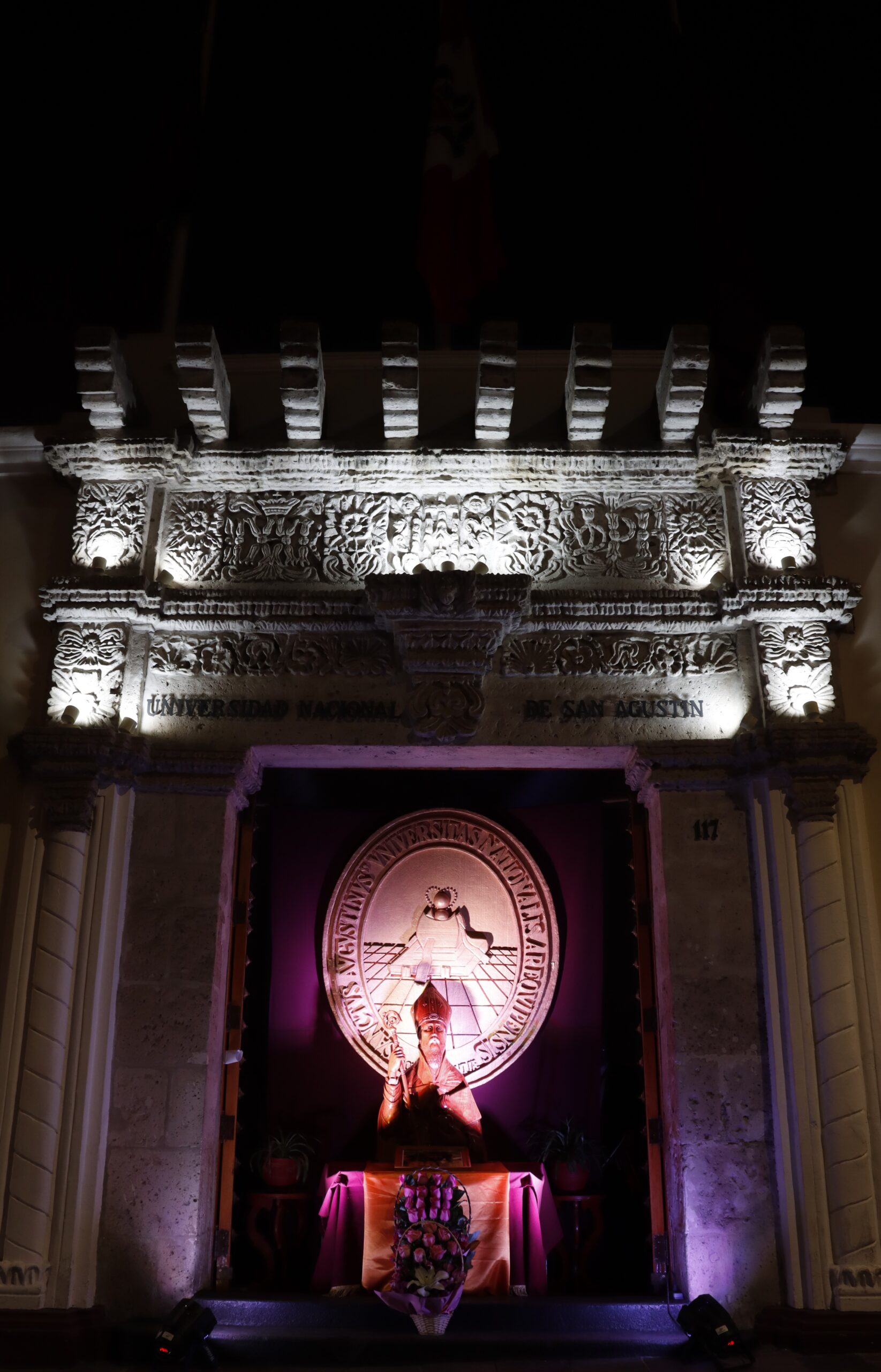 La Universidad Nacional de San Agustín de Arequipa, recibió la visita del Cristo de la Caridad, patrono de la ciudad de Arequipa. La universidad armó un altar donde se colocó la imagen de San Agustín, patrono de la universidad. Se contó con la participación del Dr. Ronald Eddy Cuba Carpio, decano de la Facultad de Ciencias Contables y Financieras, quien representó a la casa agustina y dio palabras de agradecimiento en este acto religioso. La imagen salió a recorrer las calles de Arequipa como parte de las actividades por Semana Santa